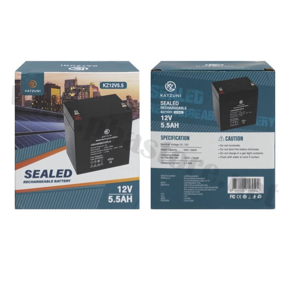 แบตเตอรี่ 12V 5.5AH KATZUNI รุ่น KZ12V5.5AH คืออุปกรณ์กักเก็บพลังงานไฟฟ้า แบตเตอรี่แห้ง นำมาชาร์จไฟใหม่ได้ ไม่ต้องเติมน้ำกลั่น ราคา 340.00 .-