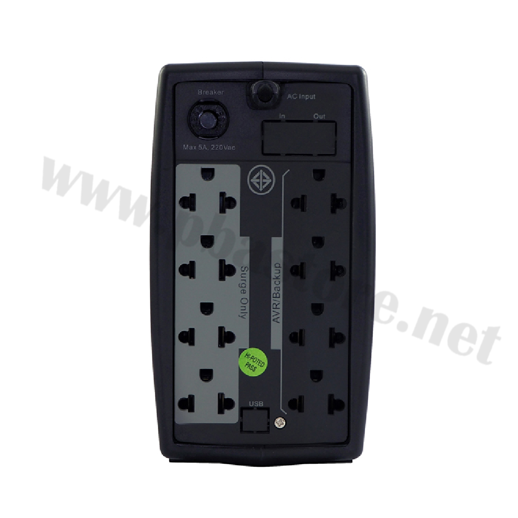 เช่น Battery capacity,Load level,Input/Output Voltage,Frequency,Fault มีระบบปรับแรงดันไฟฟ้าอัตโนมัติที่มีประสิทธิภาพ เช่น ไฟตก ไฟเกิน ไฟกระชาก ให้คงที่สม่ำเสมอ ป้องกันแรงดันไฟฟ้าสูงชั่วขณะ เช่น ฟ้าผ่า, ป้องกันการใช้งานเกินกำลัง, ป้องกันไฟฟ้าลัดวงจร เต้าเสียบสามารถเสียบได้ทั้งปลั๊กกลมและแบน 8 ช่อง ขนาดแบตเตอร์รี่ 12V8Ah