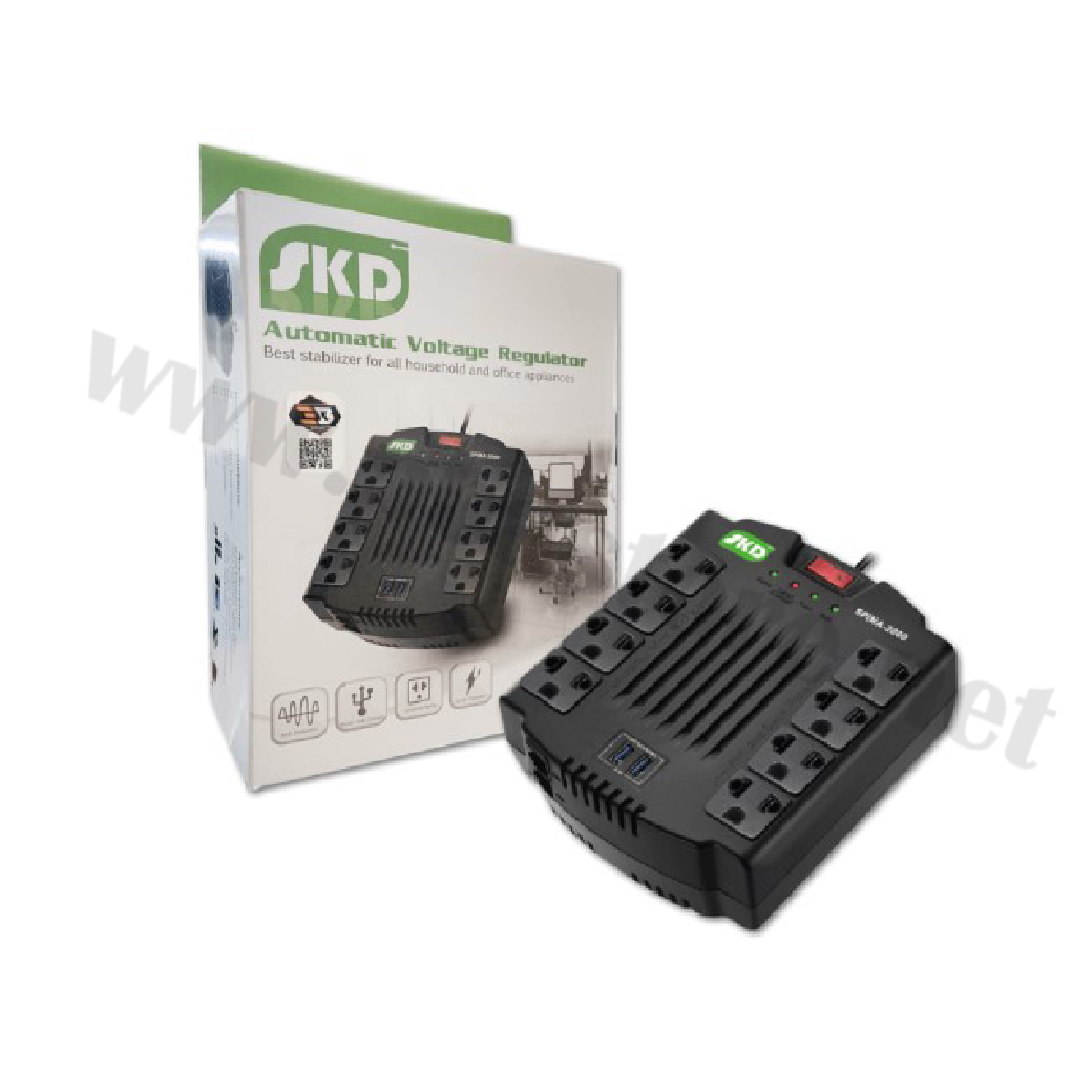 เครื่องปรับแรงดันไฟฟ้าอัตโนมัติ SKD AVR 2000VA/1000W รุ่น Spina-2000 สามารถจ่ายแรงดันไฟฟ้าผ่านตัวเสถียรภาพ boost buck ราคา 1,530.00 .-