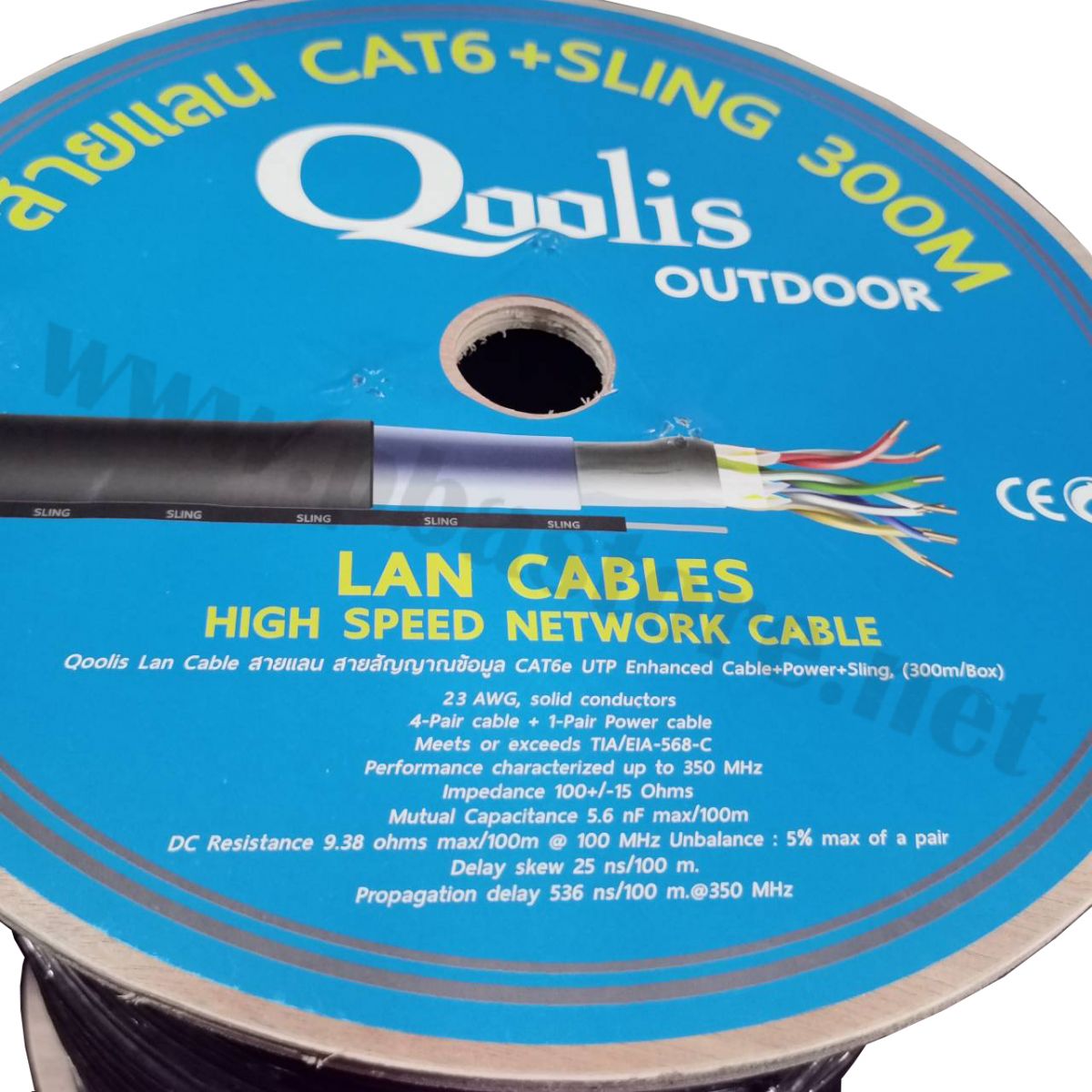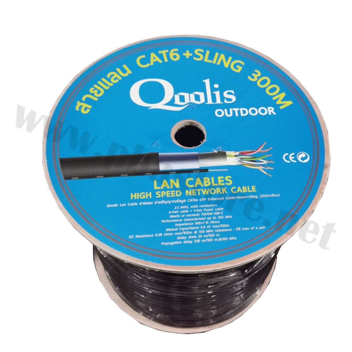 สายแลน CAT6+สลิง Outdoor 300M ยี่ห้อ QOOLIS ใช้สำหรับเชื่อมต่อระบบเครือข่าย สำหรับใช้ภายนอก Outdoor