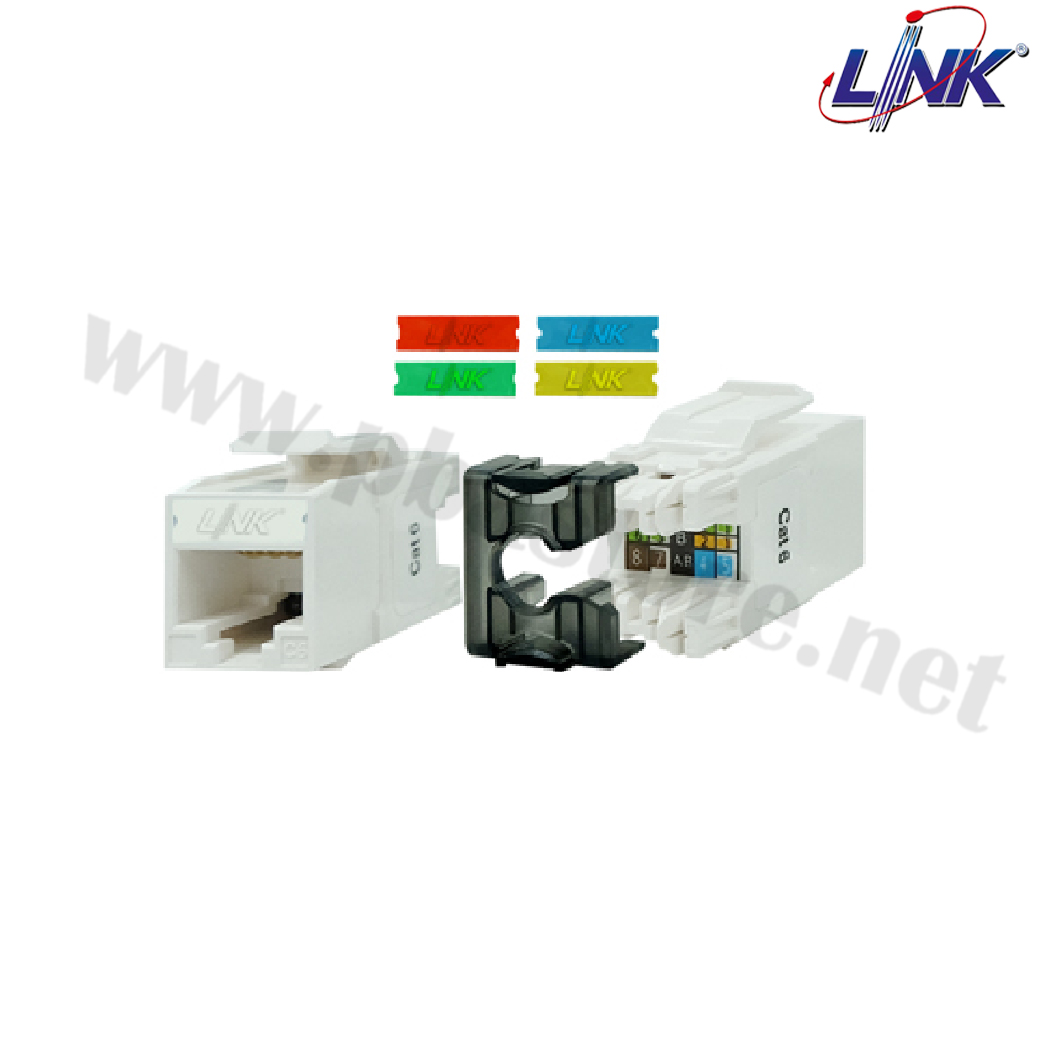 เต้ารับสายแลนแบบ CAT 6 RJ45 Slim White JACK ( 5 Color Changeable ) INTERLINK รุ่น US-1006A ป้ายโลโก้ LINK ด้านหน้ายังสามารถเปลี่ยนสีได้ถึง 5 สี (สีขาว, สีแดง, สีเขียว, สีฟ้า, สีเหลือง )