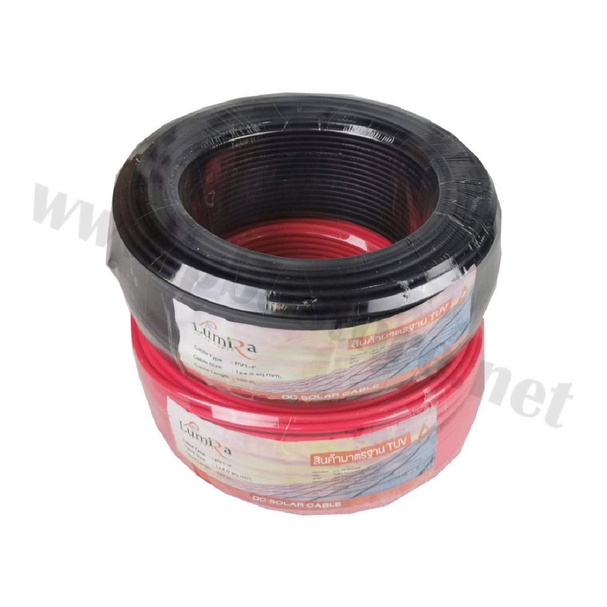 สายไฟโซล่าเซลล์ DC Solar Cable 4mm² ยาว 100 เมตร Lumira รุ่น PV-1F สายไฟฉนวน 2 ชั้น ภายในเป็นทองแดงฝอยเคลือบ เหมาะกับไฟฟ้ากระแสตรงเช่น งานโซล่าเซลล์