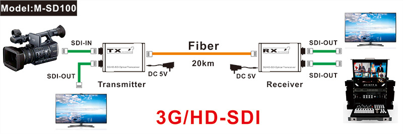 1. Long distance transmission of 3G/HD-SDI video and audio signals through optical fiber, up to 3-20KM (default 3KM)