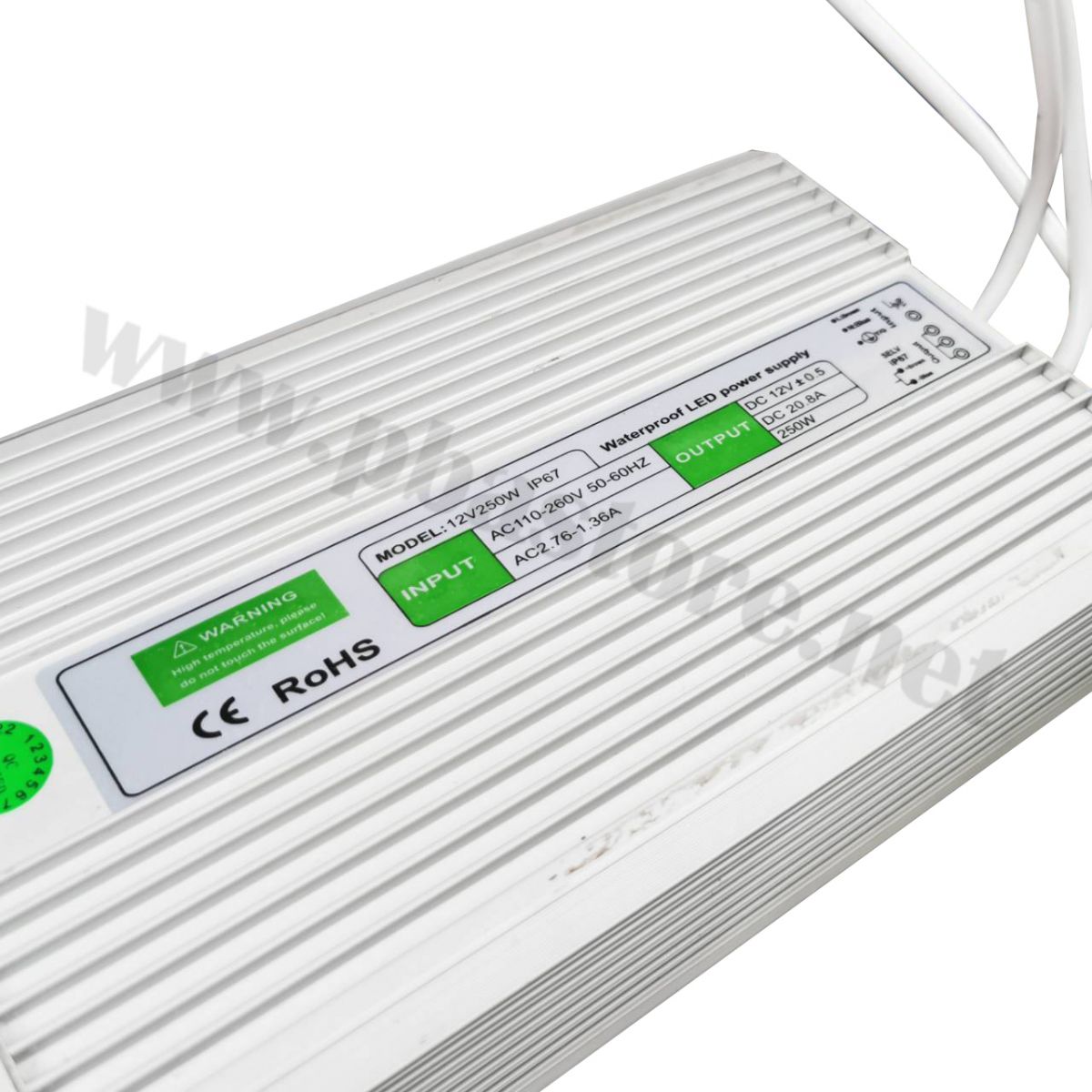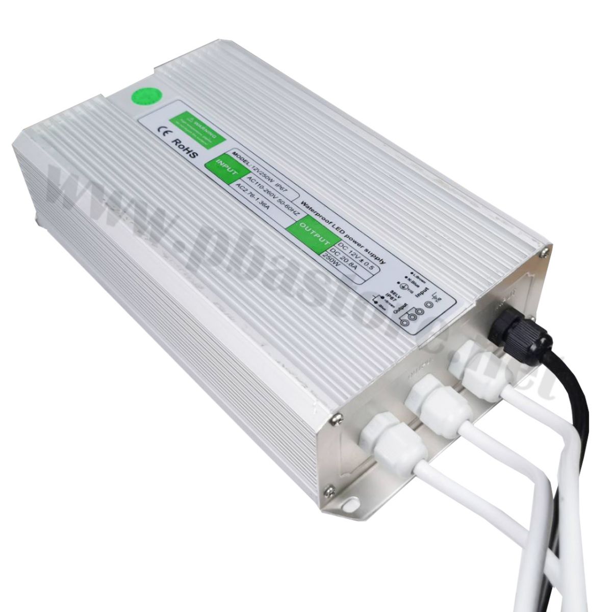 Switching Power Supply หม้อแปลงกันน้ำ IP67 12V 20A 250W แหล่งจ่ายไฟกระแสสลับแบบกันน้ำ แรงดันไฟขาออก 12V กระแสไฟขาออก 20A กำลังไฟขาออกสูงสุด 250W