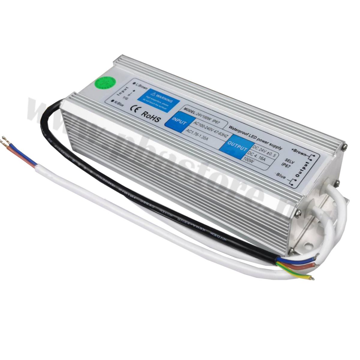 Switching Power Supply หม้อแปลงกันน้ำ IP67 24V 4.1A 100W แหล่งจ่ายไฟกระแสสลับแบบกันน้ำ แรงดันไฟขาออก 24V กระแสไฟขาออก 4.1A กำลังไฟขาออกสูงสุด 100W
