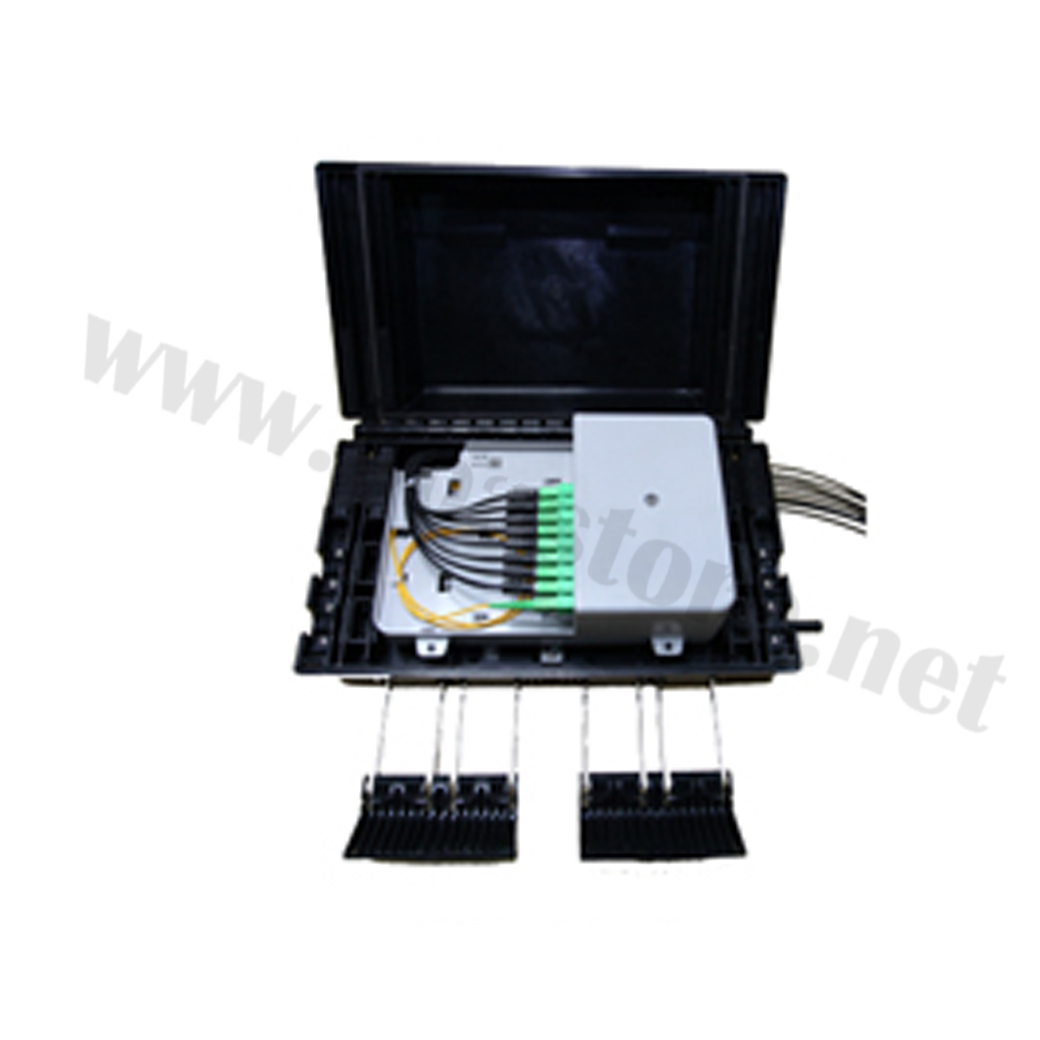 ด้านใต้กล่องมีช่องสำหรับนำสายไฟเบอร์ออฟติกเข้าออกได้ ติดตั้งใช้งานง่าย เหมาะสำหรับเป็นจุดพักเชื่อมต่อสไปรซและกระจายสายไฟเบอร์ออฟติก