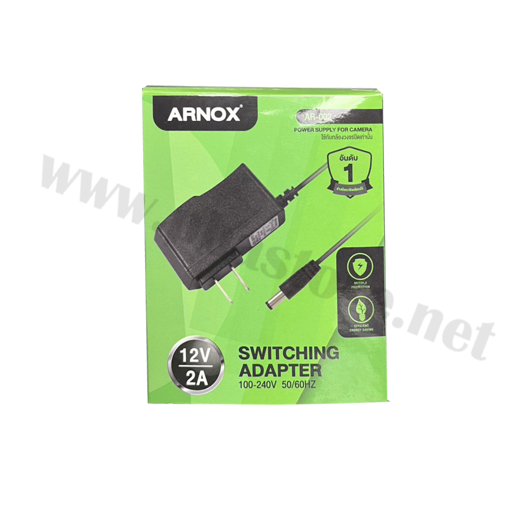 ADAPTER 12V 2A For CCTV Camera Arnox รุ่น AR-02 อุปกรณ์จ่ายไฟ สำหรับกล้องวงจรปิดหรืออุปกรณ์อิเลคทรอนิกส์อื่นๆ ที่กินแรงดันและกระแสไฟ 12V 2A ราคา 37.00 .-