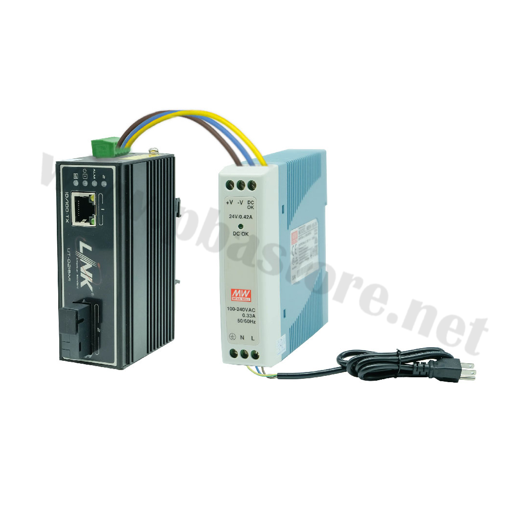 Fiber Optic Media Converter MINI-INDUSTRIAL 10/100 RJ45, SC connector(SM) w/DC Power Supply, 20km INTERLINK รุ่น UT-0215MI-TS20 แบบ SC connector ชนิดโหมดเดี่ยว (Single-Mode ) และ 1 พอร์ตแลน RJ45 รองรับความเร็ว 10/100 Mbps