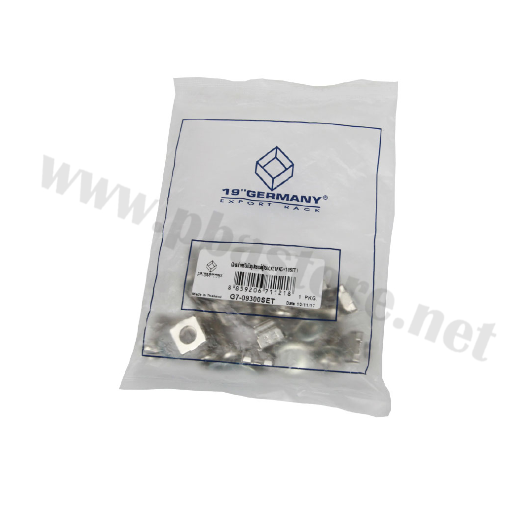 ชุดน๊อต M6 ยึดอุปกรณ์ตู้แร็ค (บรรจุ 10 ชุด) GERMANY รุ่น G7-09300SET ใช้สำหรับขันยึดอุปกรณ์หรือถาดรองเข้ากับตู้แร็คมาตรฐาน
