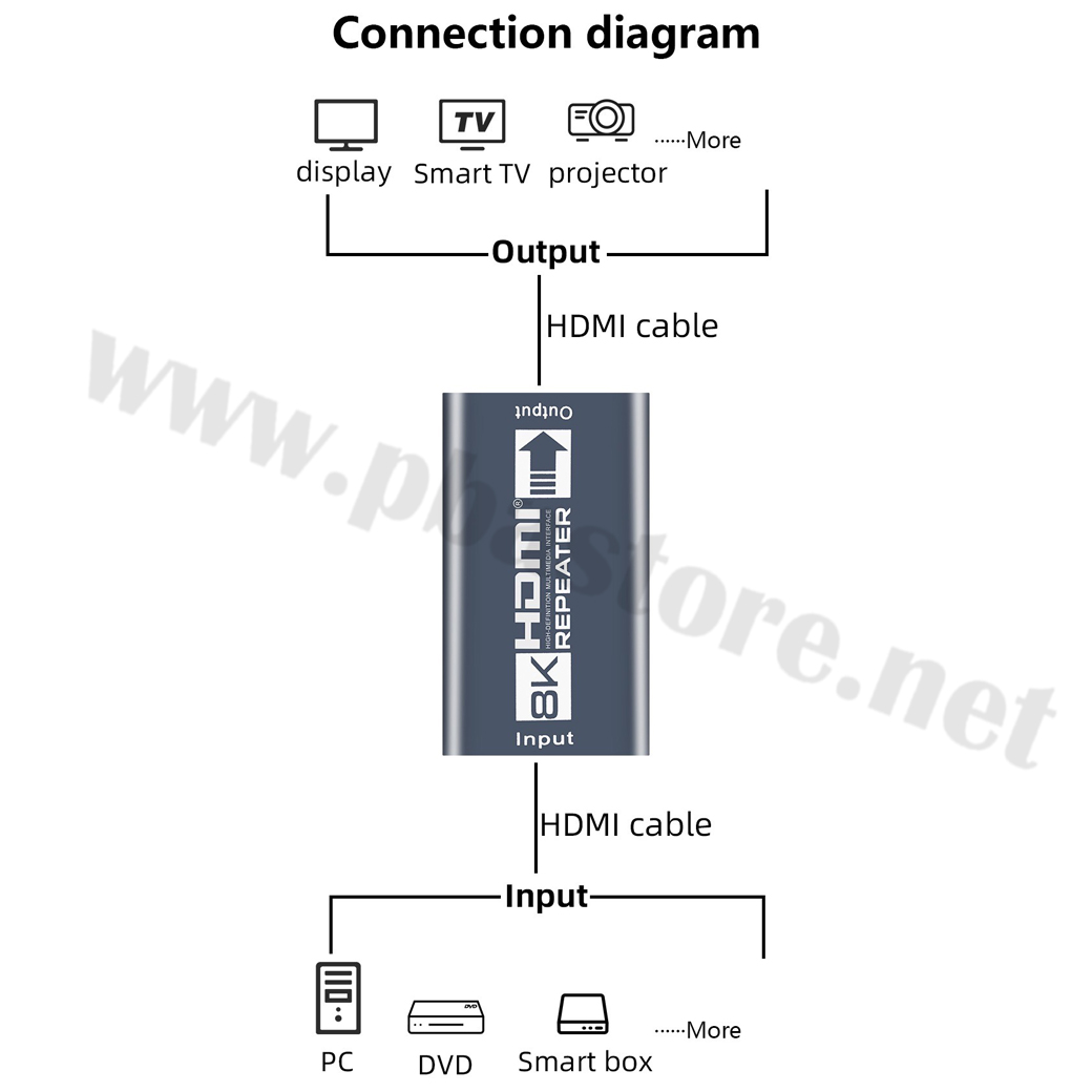 ต่อตรง HDMI Repeater Signal amplifire 8K60Hz Hdmi 2.1 เป็นอุปกรณ์ต่อกลางขยายสัญญาณ HDMI ให้สามารถใช้งานได้ไกลขึ้น รองรับความละเอียดสูงสุด 8K60Hz