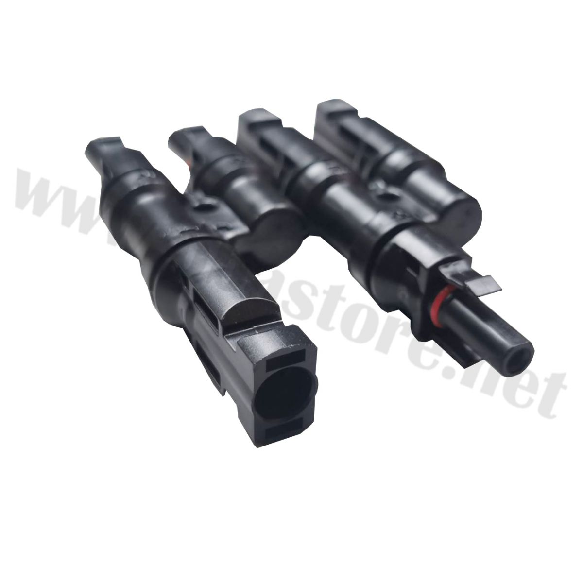 MC4 T2 1000V 30A Connector อุปกรณ์แยกไฟแผงโซล่าเซลล์ เข้า 1 ออก 2 ยี่ห้อ EEG (1คู่/ถุง) ผลิตจากวัสดุอย่างดี ทนต่อแดดและฝน มีมาตรฐานรองรับ TUV ราคา 65.00 .-