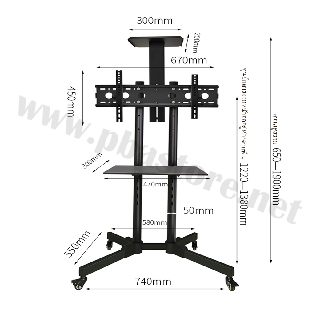 ขาตั้งทีวี พร้อมแท่นวาง TV SIZE 32-65 นิ้ว แบบล้อเลื่อนพร้อมชั้นวาง ยี่ห้อ Attack รุ่น RPH1500 รองรับทีวี LED LCD Plasma จอขนาดใหญ่ 32-65 นิ้ว