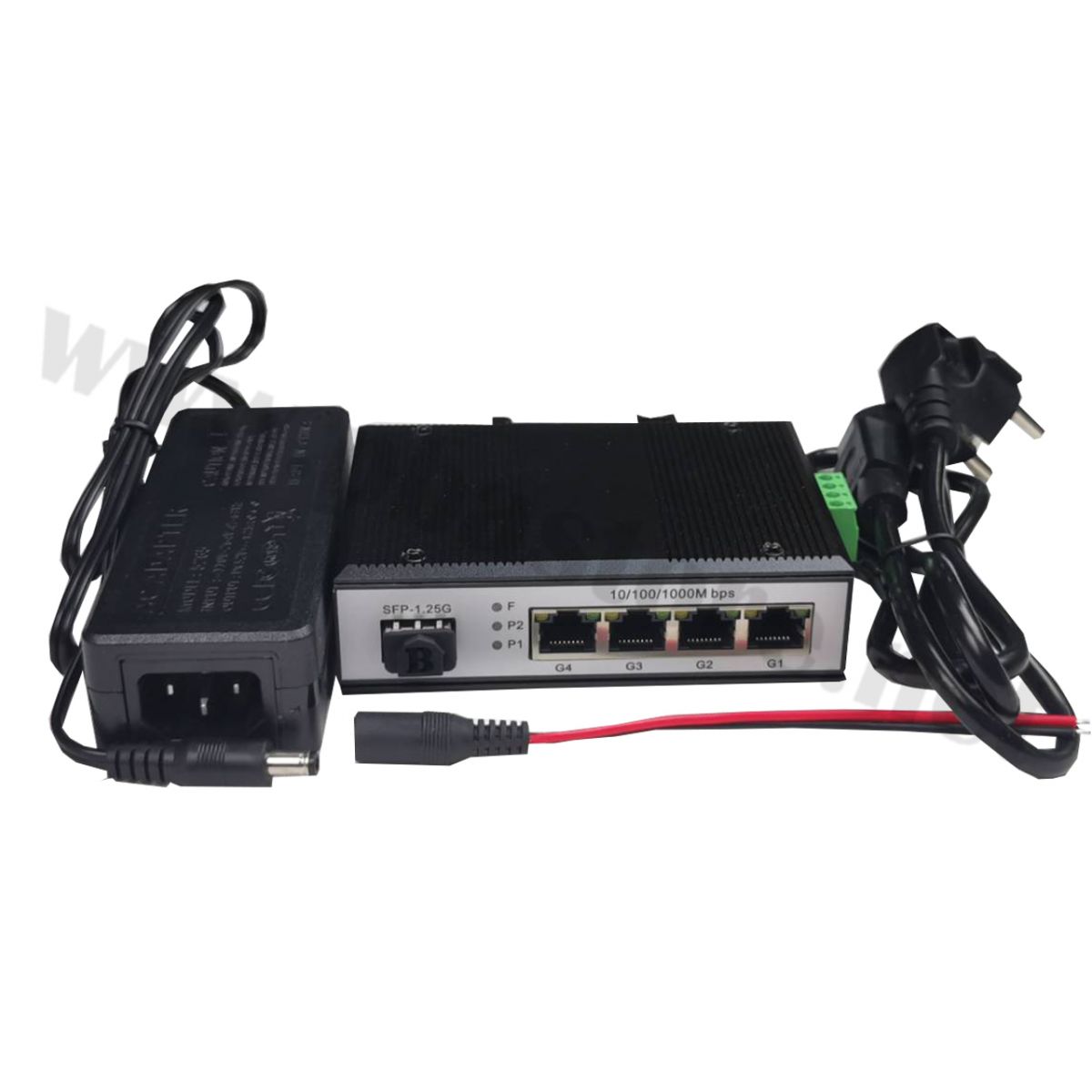 Gigabit Industrial POE Switch 4 PORT + 1SFP 10/100/1000M (With Power Adapter) สำหรับใช้เป็น Switch แยกสาย LAN ความเร็วในการรับส่งข้อมูลแบบ Gigabit
