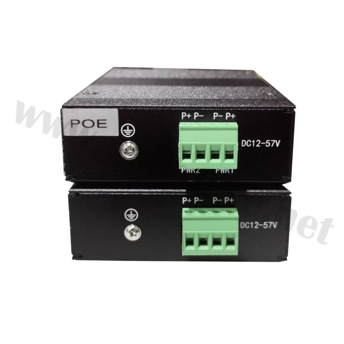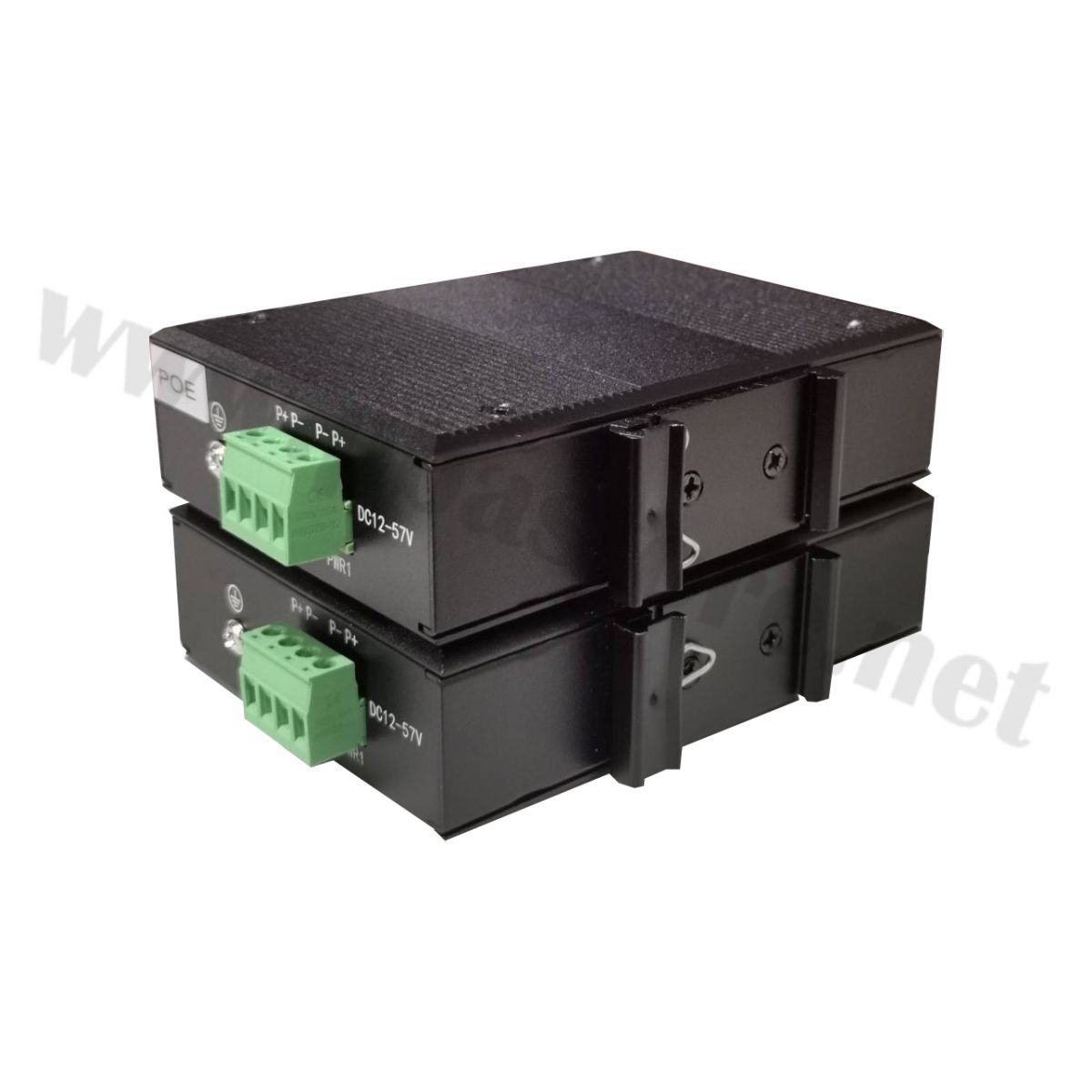Industrial Media Switch POE 4 port RJ45 10/100M A + Industrial Media Switch 1port RJ45 10/100M (B) (With Power Adapter) เป็นอุปกรณ์แปลงและรับส่งสัญญาณเครือข่ายอินเตอร์เน็ตระยะไกล ผ่านสายไฟเบอร์ออฟติก