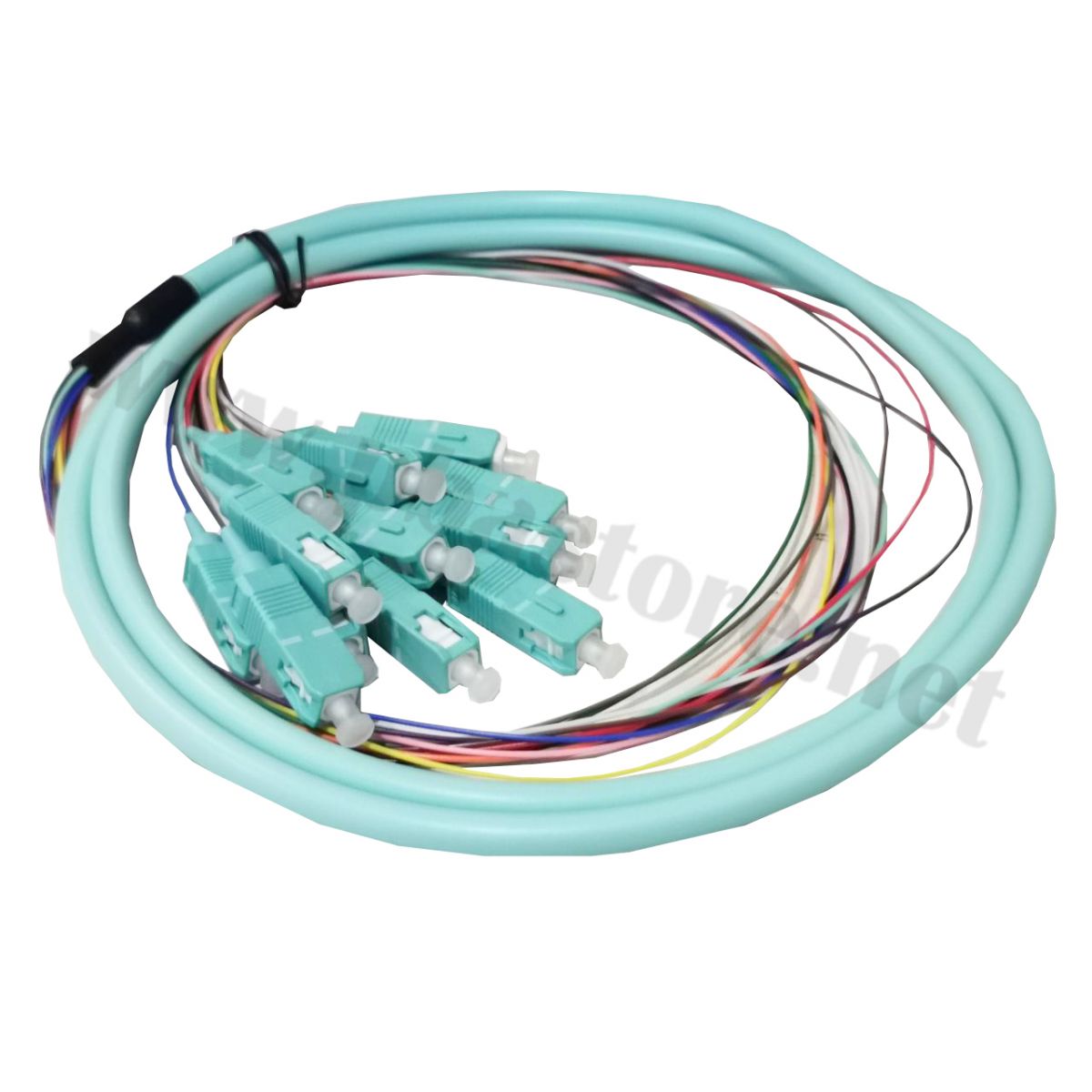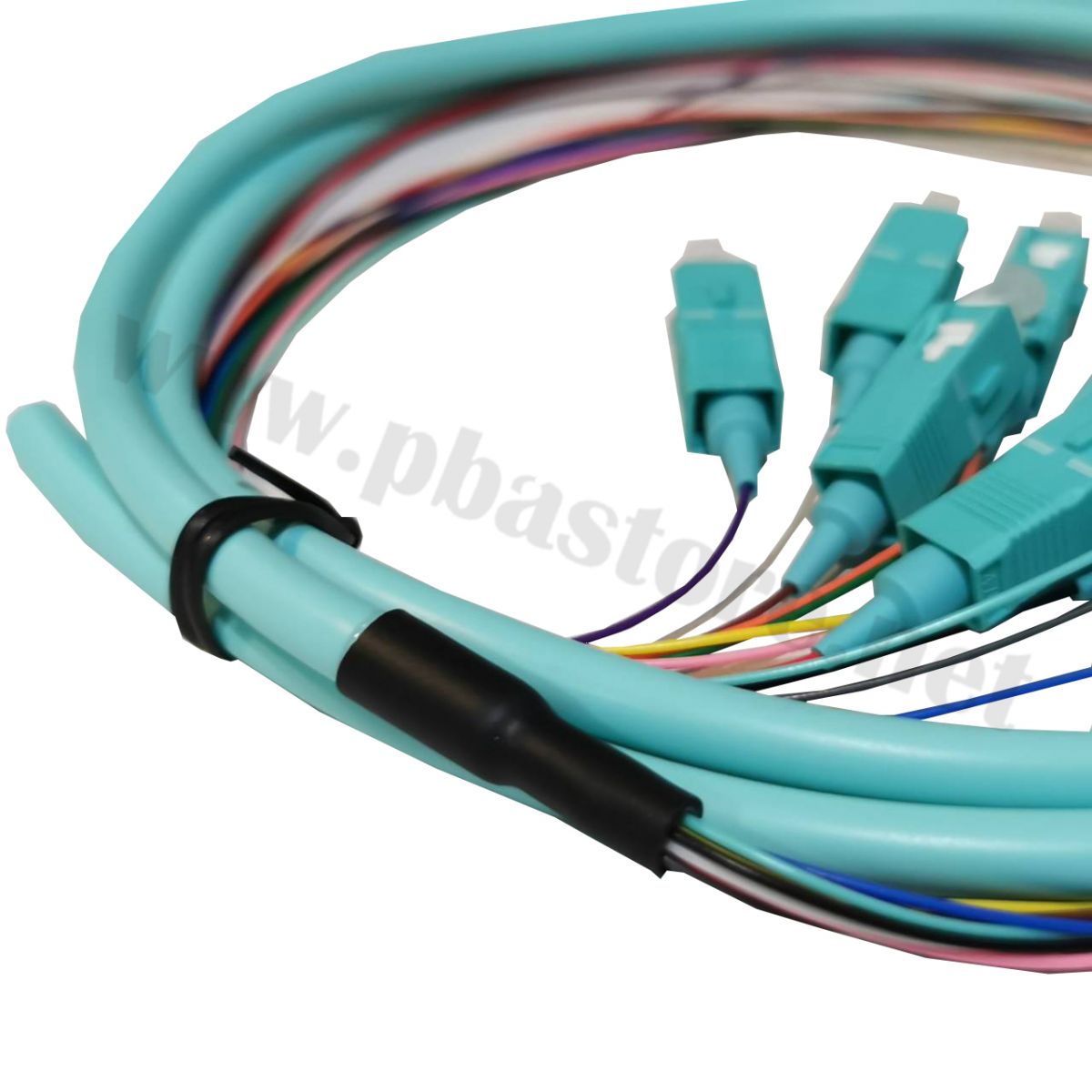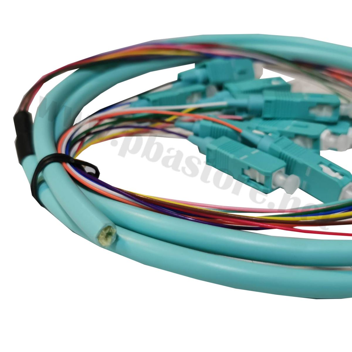 สายพิกเทล(PIGTAIL) 12CORE SC/UPC/0.9mm/50/125/MM/OM3/1.5M รองรับการโค้งงอได้ดีโดยไม่สูญเสียสัญญาณมาก สำหรับงานต่อสายแบบสไปรท์ด้วยเครื่อง