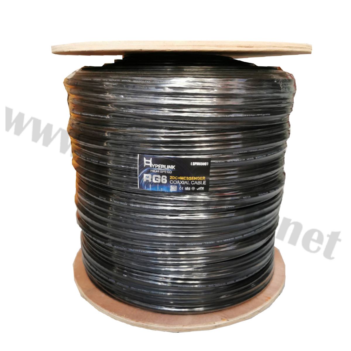 สาย RG6 + ไฟ + สลิง OUTDOOR Shield 95% สายถัก 168 ทองแดง 30% (500M/ROLL) HYPERLINK รุ่น RPM6500 ใช้สำหรับเดินสายกล้องวงจรปิด CCTV ที่ต้องการไฟเลี้ยง