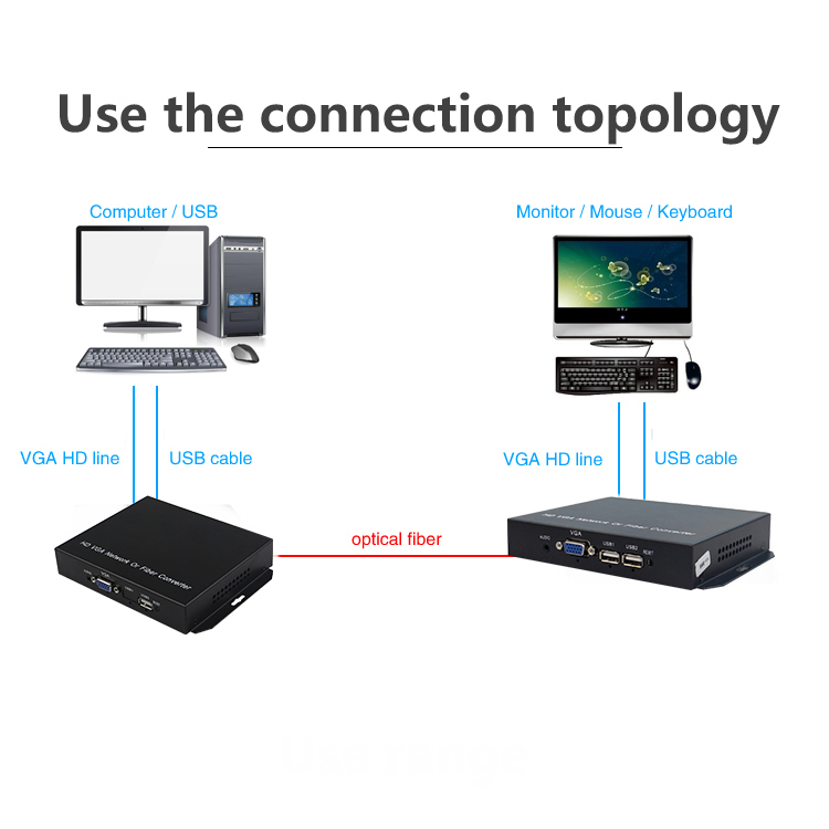 VGA Fiber Optic Extender 20km + USB 2Port KVM