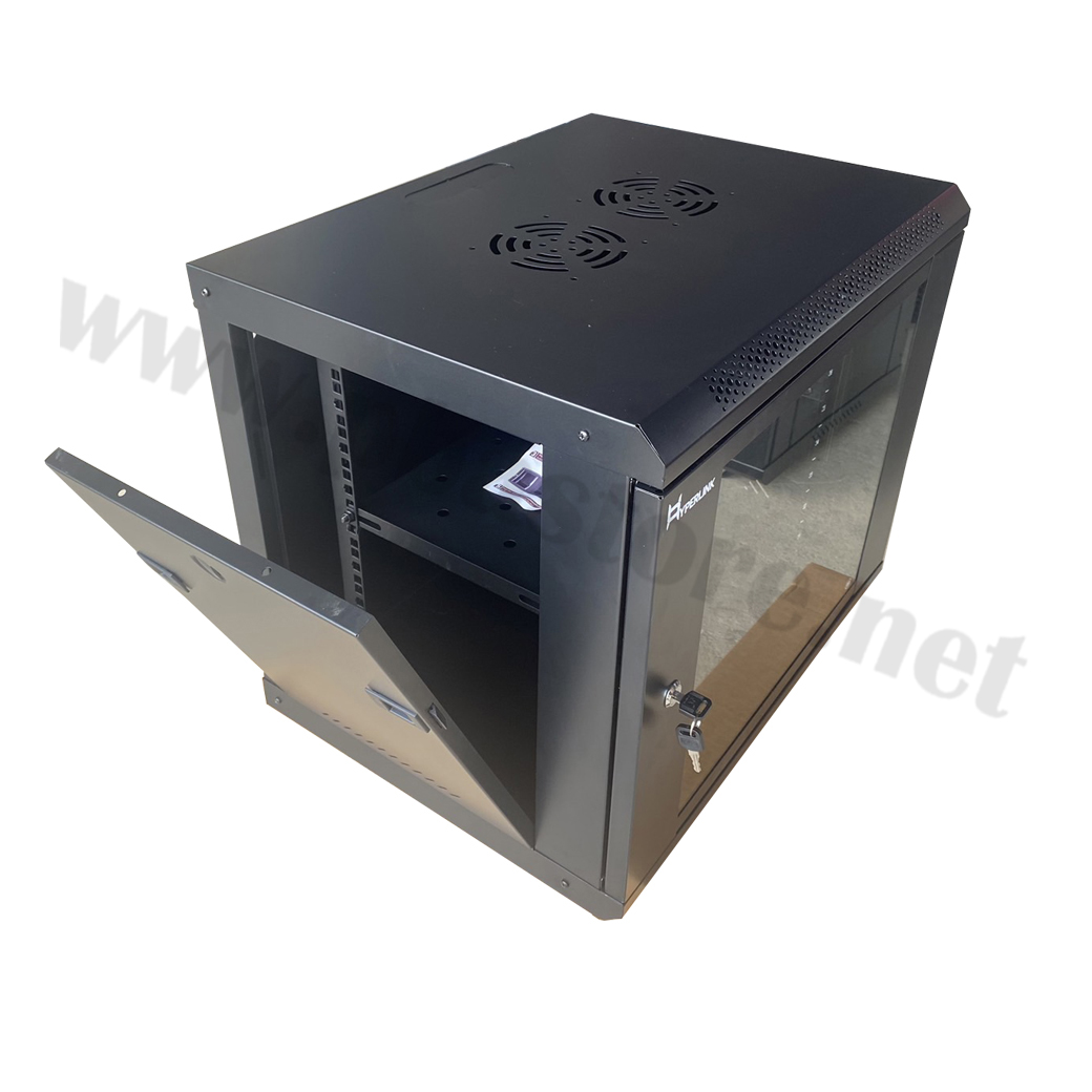 ตู้ RACK HYPERLINK ขนาด 9U ลึก 45 CM สีดำ HI-CUT รุ่น 9U-H45 (แถมฟรี! ถาด 1 ใบ 19cm) เป็นตู้แขวนผนังที่ออกแบบมาเพื่อรองรับการติดตั้งอุปกรณ์เครือข่าย เช่น Switch, Router, NVR และ Patch Panel ราคา 1,190.00 .-