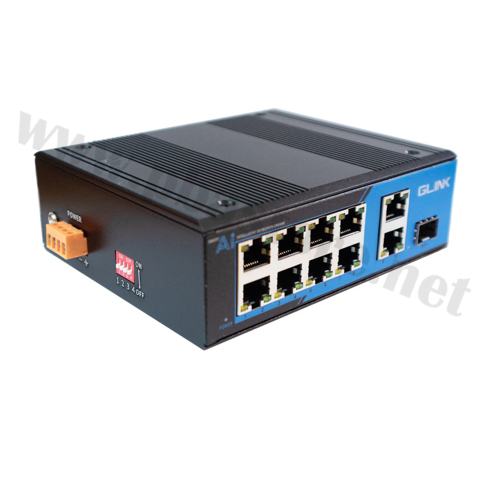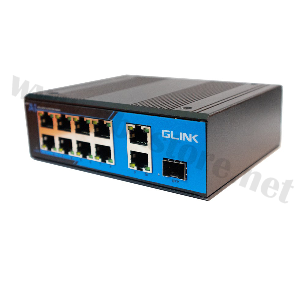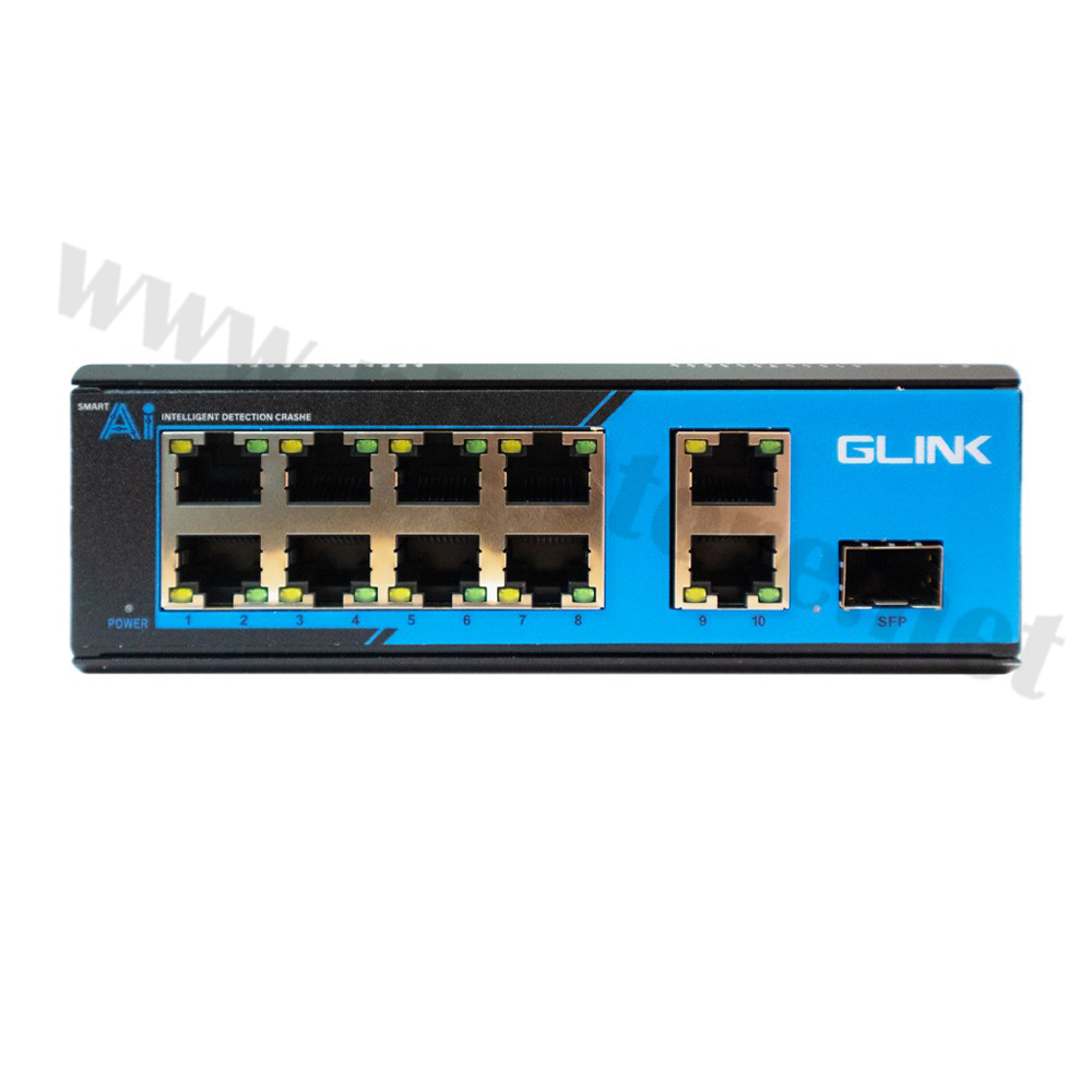 Industrial grade full gigabit 8+2+1 SFP Standard POE Switch GLINK รุ่น GPOE-05 สำหรับใช้เป็น Switch แยกสาย LAN ความเร็วในการรับส่งข้อมูลแบบ Gigabit