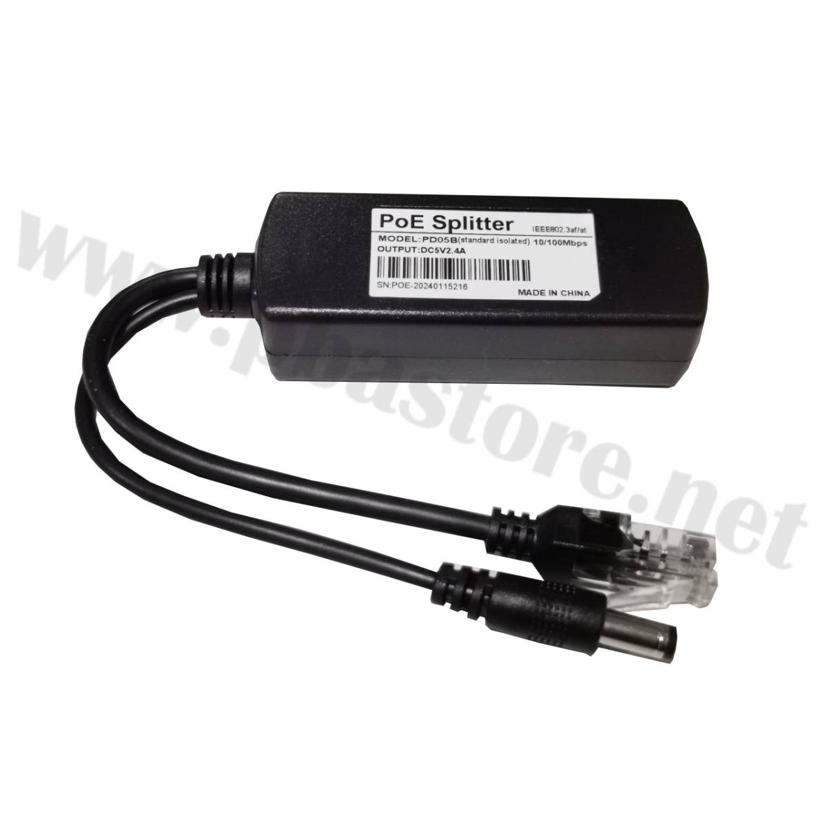POE Splitter 48V to 5V 10/100M (5.5*2.1) ใช้งานร่วมกับ PoE Switch มาตรฐาน IEEE802.3af/at รองรับการเชื่อมต่อสายแลน ความเร็ว 10/100 Mbps