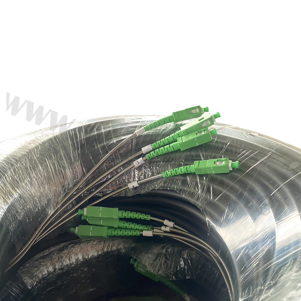 สายสำเร็จไฟเบอร์ออฟติกกลม Field Tactical Armored SC/APC-SC/APC 4core SM 100M -600M สายไฟเบอร์ออปติก แบบเข้าหัวสำเร็จ 4 Core