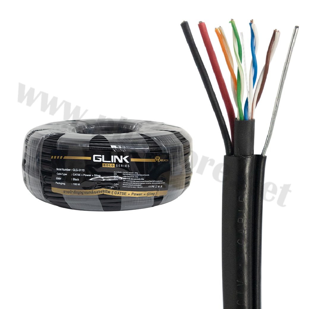 สาย LAN CAT5E+ไฟ + สลิง OUTDOOR 100 M GLINK รุ่น GLG-5110 สายแลน UTP สำหรับเครือข่าย อินเตอร์เน็ต หรือกล้องวงจรปิด สำหรับใช้ภายนอก ทนแดด ทนฝน