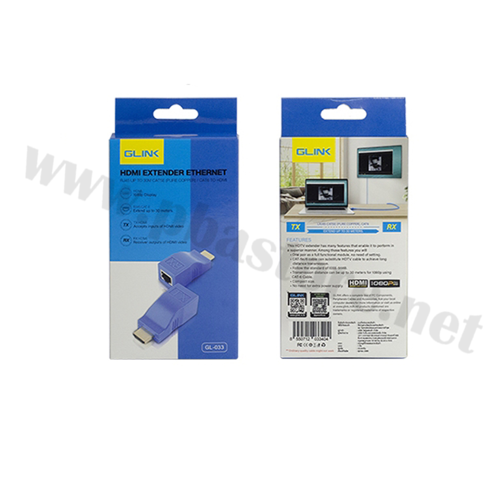 HDMI TO LAN Extender 30M GLINK รุ่น GL-033 อุปกรณ์เพิ่มความยาวสาย HDMI ให้สามารถใช้งานได้ไกลถึง 30m โดยใช้สาย LAN CAT5e/6 เพียงเส้นเดียวในการเชื่อมต่อ ราคา 70.00 .-