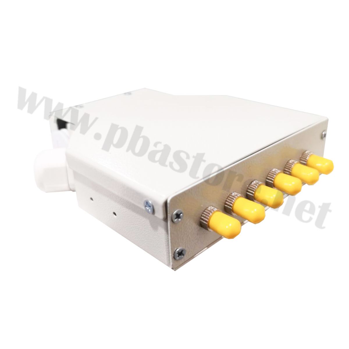 กล่องเก็บสายไฟเบอร์ DIN Rail Terminal Box 6 Port ST (กล่องเหล็ก) ยีดรางปีกนก กล่องสำหรับใช้เชื่อมต่ออุปกรณ์ตอนปลาย ชนิดหัว ST วัสดุโลหะ พ่นสีระบบอุตสาหกรรมอย่างดี