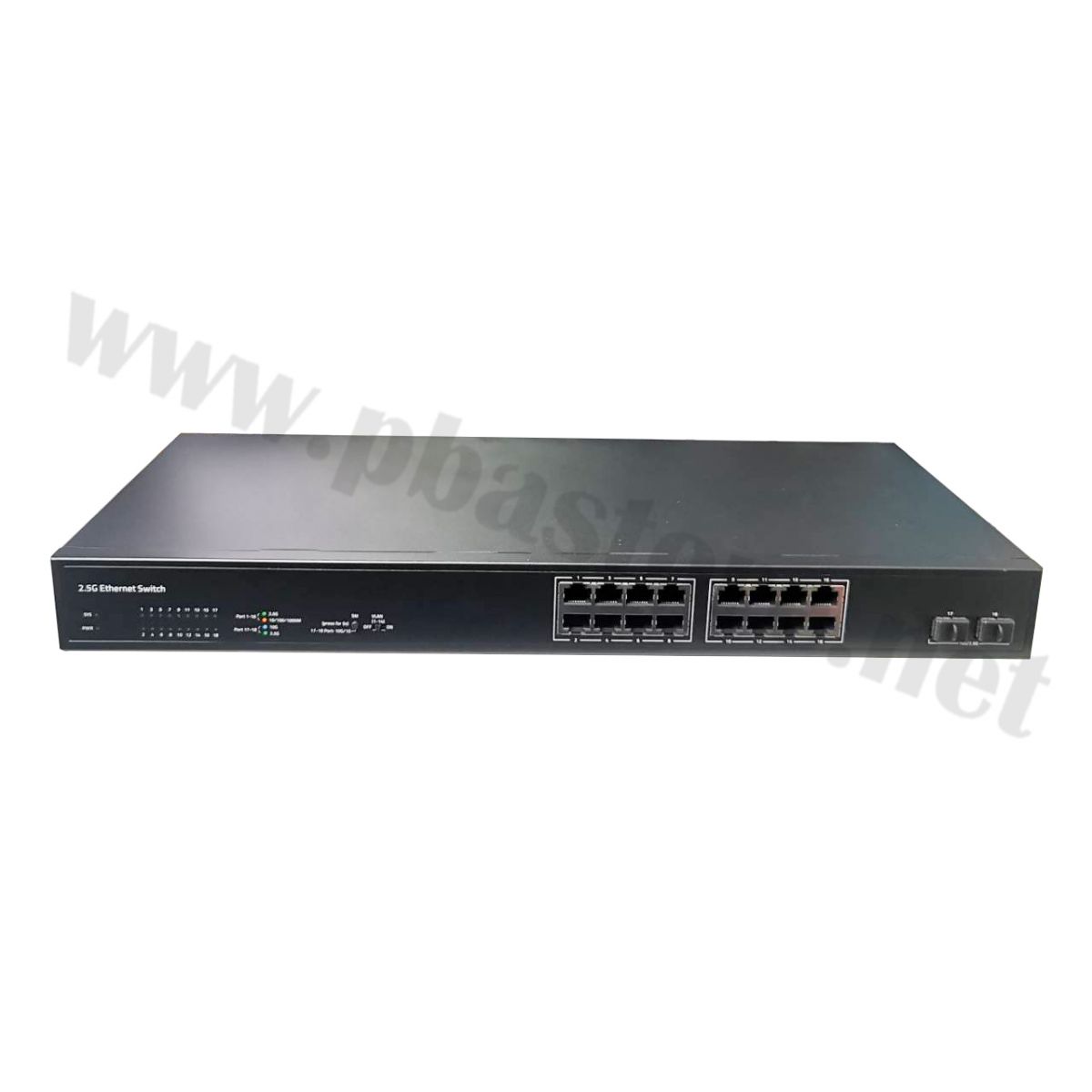 2.5G Switch, 2.5 Gigabit Switch, Switch 2.5G, 16 Port Switch, 16 Port RJ45, Unmanaged Switch, VLAN Switch, VLAN Mode Button, SM Mode, Multi-Gig Switch, 2.5G Ethernet, 2 SFP, SFP 10G, SFP 2.5G, 10G Uplink, Network Switch, High Speed Network, Office Network, LAN Switch, Plug and Play, Cat5e Cat6, STC-216XGDGE