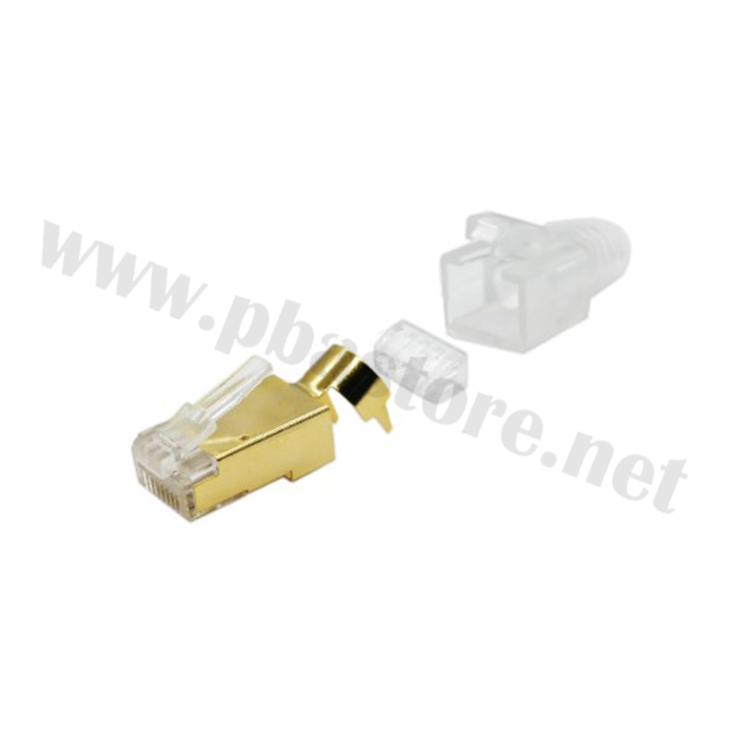 หัวแลน CAT6A Shield Modular Plug W/Boot (Gold/Transparent) Interlink รุ่น US-1070SG หัวแบบชีลด์ (Shield) สีทอง สำหรับเข้าหัวปลายสาย LAN