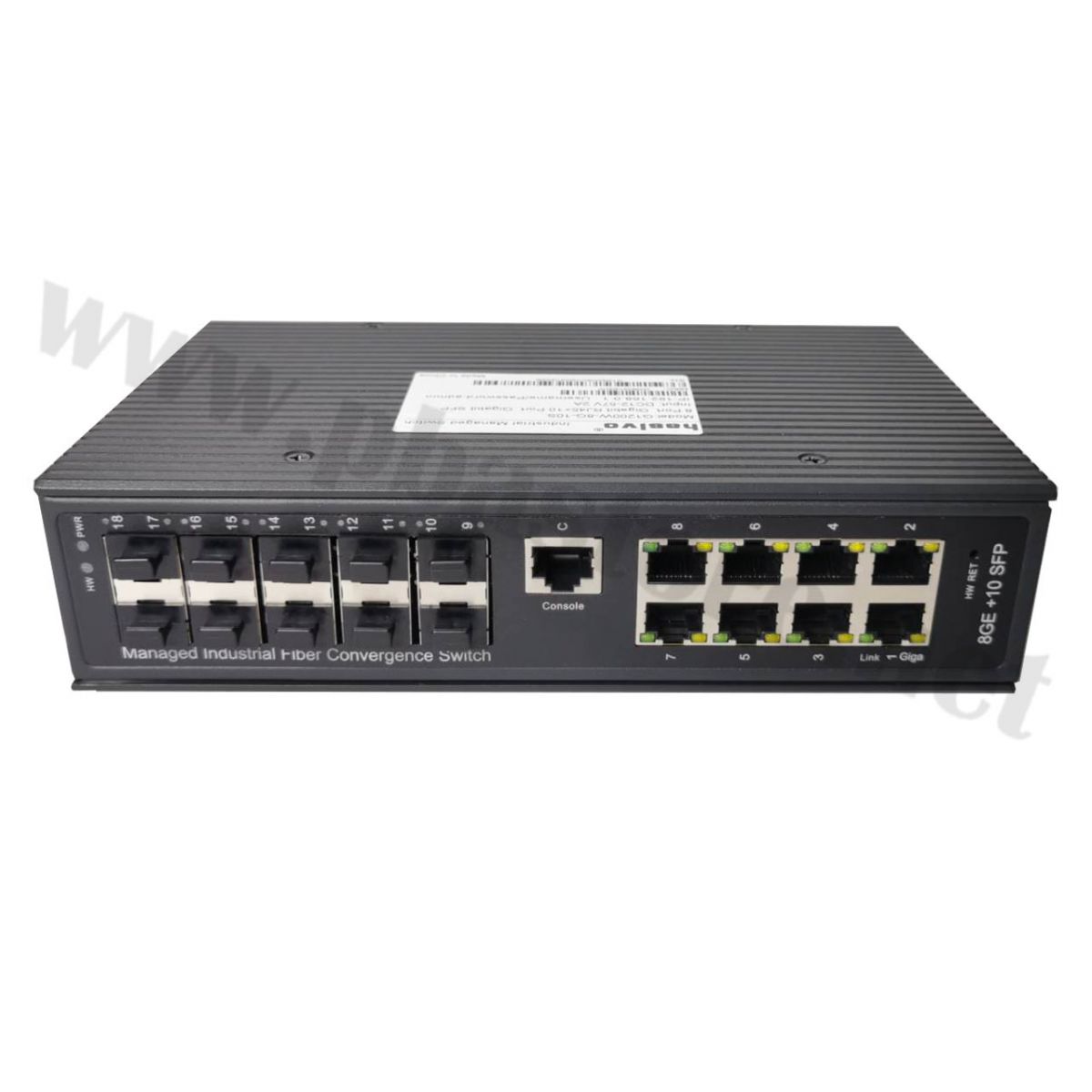 Gigabit Industrial Switch 8 Port + 10 SFP + 1 Console Port L2 Managed hasivo รุ่น G1200W-8G-10S (With Power Adapter DC 12V2A) เหมาะสำหรับใช้ในเครือข่ายอุตสาหกรรม