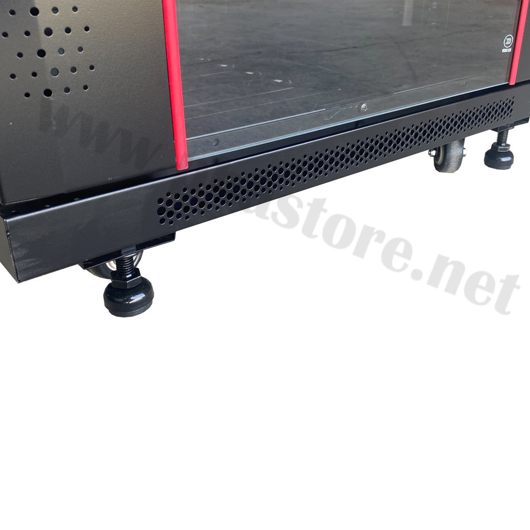 ตัวตู้ผลิตจากเหล็กคุณภาพสูง แข็งแรงทนทาน มาพร้อมประตูกระจกนิรภัยและพัดลมระบายอากาศ 4 ตัว เหมาะสำหรับทั้งงานติดตั้งภายในสำนักงาน อาคาร ระบบกล้องวงจรปิด และงานเน็ตเวิร์กทั่วไป