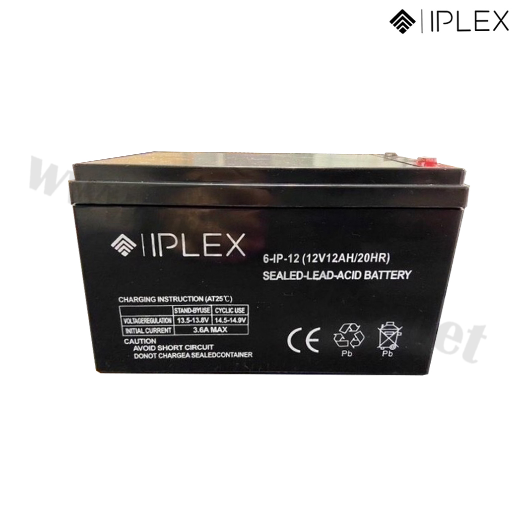 แบตเตอรี่ 12V 12AH IPLEX รุ่น 6-IP-12(E) อุปกรณ์กักเก็บพลังงานไฟฟ้า แบตเตอรี่แห้ง นำมาชาร์จไฟใหม่ได้ ไม่ต้องเติมน้ำกลั่น