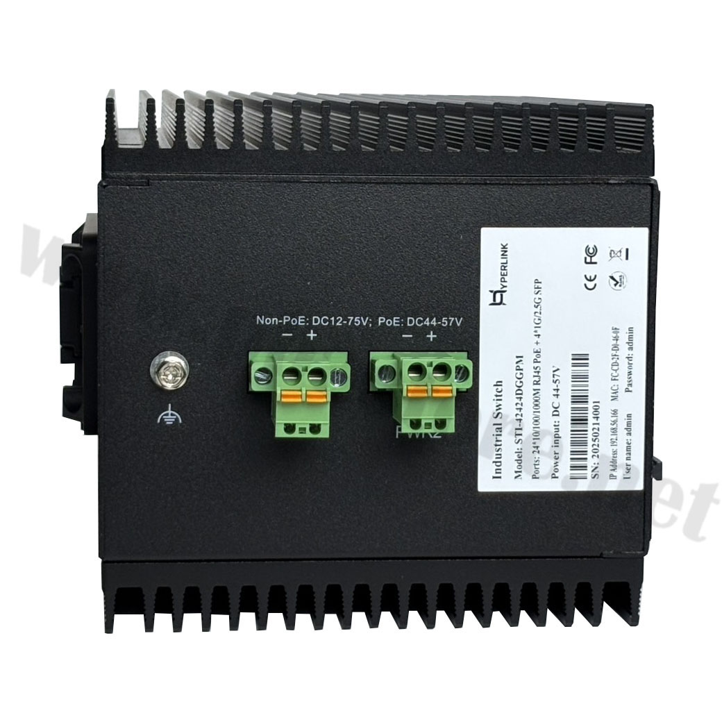 GIGABIT INDUSTRIAL POE 24 PORT + 4 SFP(100M/1G/2.5G) + 1 Console port + 1 USB / L2 Managed (AF / AT) 370W IP40 fan-less and Din-rail รุ่น STI-42424DGGPM