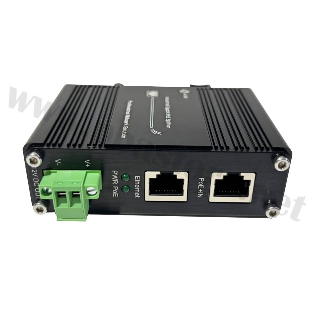 - Splits power and data from PoE Input