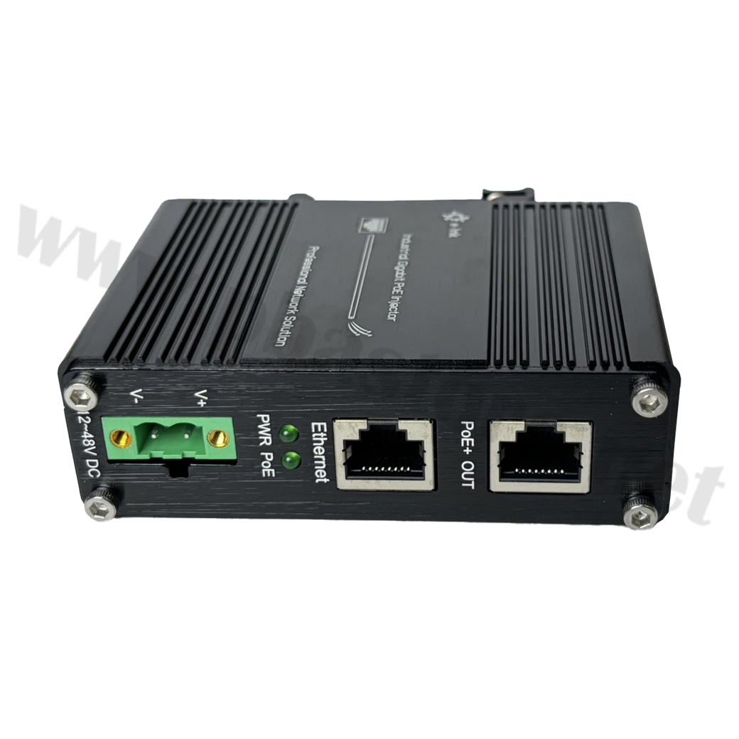 -1 RJ-45 Gigabit Ethernet Data Input Port + 1 RJ-45 Gigabit with PoE Ethernet Output Port (Data + Power)