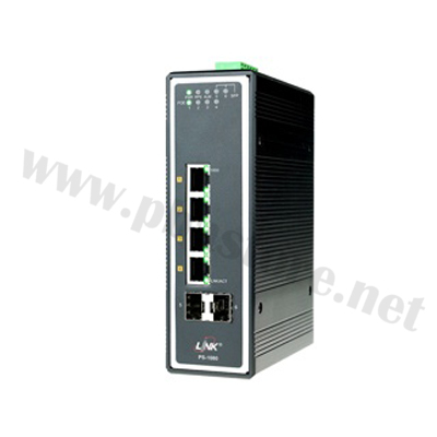 Industrial GIGABIT PoE SWITCH (AC 90W) 4 GE (PoE) + 2 SFP (GE) INTERLINK รุ่น PS-1080 ออกแบบสำหรับติดตั้งภายนอก ทนสภาพอากาศสุดขั้ว