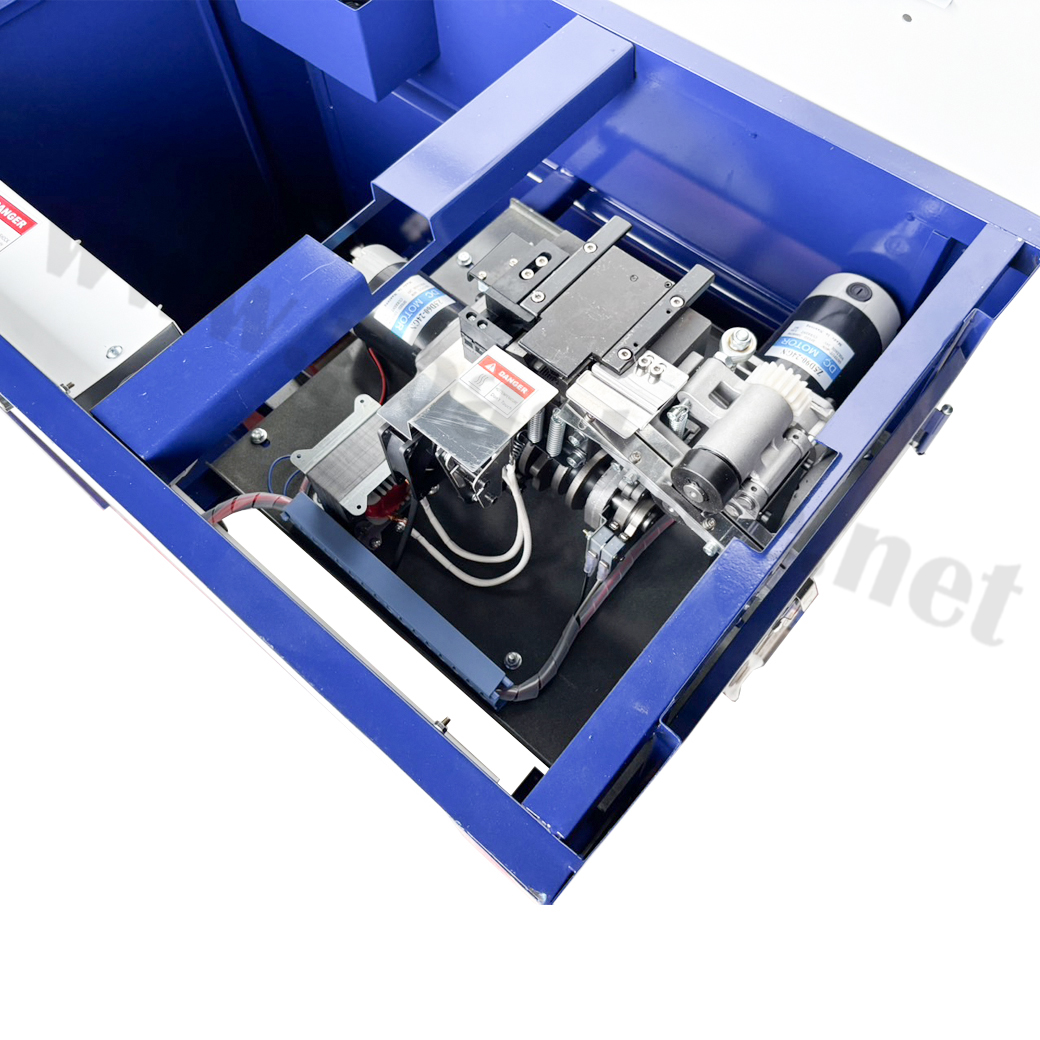 - เพียงวางกล่องและสอดสาย เครื่องจะทำการรัด-ตัดสายโดยอัตโนมัติ