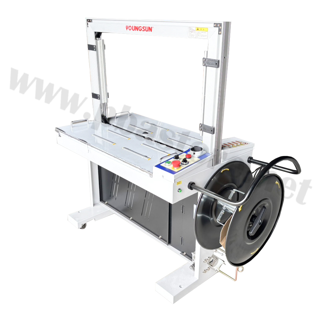 เหมาะสำหรับโรงงานและสายการผลิตที่ต้องการความรวดเร็ว แม่นยำ และความต่อเนื่องในการรัดกล่อง ใช้งานง่ายด้วยระบบอัตโนมัติ รองรับสายรัด PP ขนาด 11-13 มม. ใช้ไฟฟ้า 220V ขับเคลื่อนด้วยระบบมอเตอร์ 3 ตัวที่ให้แรงดึงสูงและรัดแน่นในทุกกล่อง ช่วยประหยัดแรงงานและเวลาในการทำงานได้อย่างมีประสิทธิภาพสูงสุด