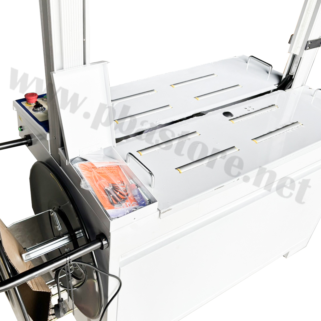 เครื่องรัดกล่องสำเร็จรูป 3 มอเตอร์ รุ่นอัตโนมัติ(Auto) 220V รองรับ PP belt 11-13mm รุ่น MH-201 เป็นเครื่องรัดกล่องคุณภาพสูงที่ออกแบบมาเพื่อเพิ่มประสิทธิภาพในการบรรจุภัณฑ์ ราคา 42,500.00 .-