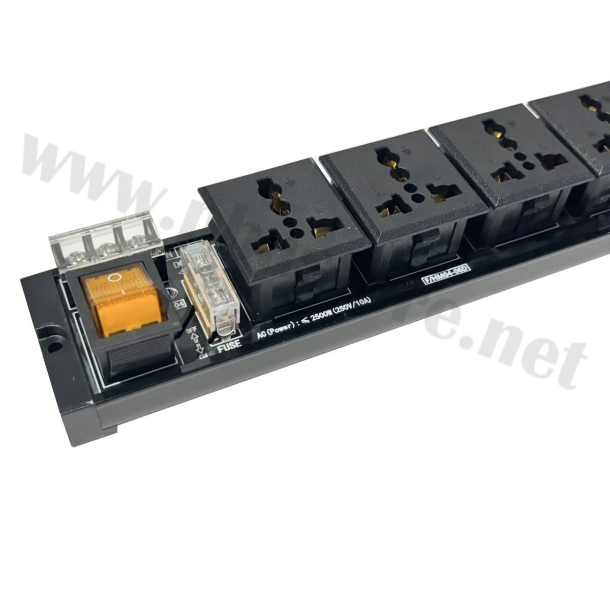จำนวนช่อง : 6 ช่อง (ปลั๊ก 3 ขาแบบ Universal) รองรับการเชื่อมต่อสายไฟ L, N, และ P