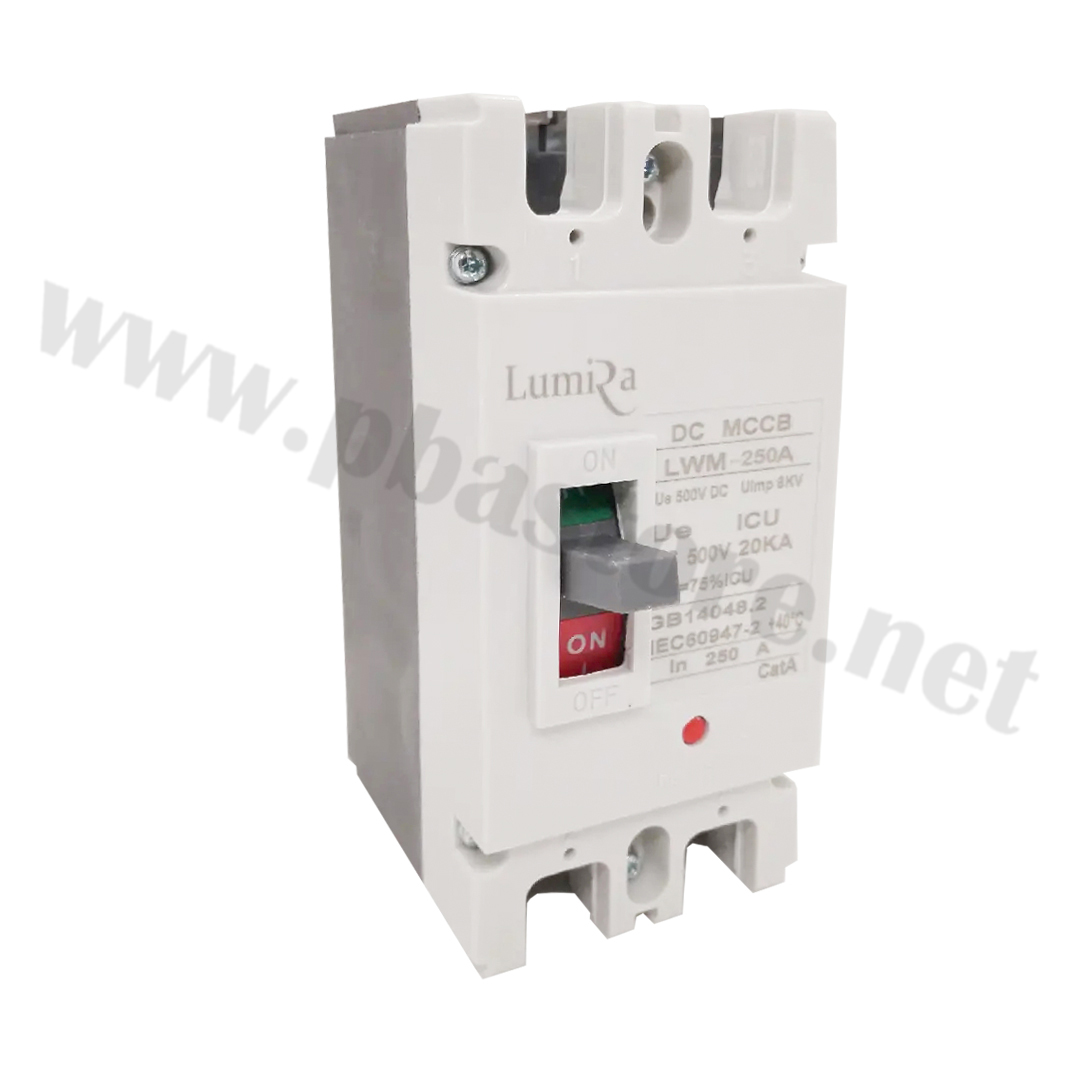 เบรกเกอร์ DC MCCB 500V 250A Lumira รุ่น LWM-250A อุปกรณ์ป้องกันกระแสไฟเกินและไฟลัดวงจร เซอร์กิตเบรกเกอร์เป็นอุปกรณ์ป้องกันทางไฟฟ้า ทำหน้าที่ในการป้องกันการใช้ไฟฟ้าเกินและกระแสไฟฟ้าลัดวงจร