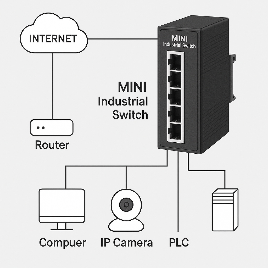 รองรับพอร์ต RJ45 จำนวน 5 ช่อง พร้อมรองรับความเร็วการส่งข้อมูลแบบ 10/100 Mbps เหมาะสำหรับการเชื่อมต่ออุปกรณ์เครือข่ายหลากหลาย เช่น กล้องวงจรปิด (CCTV), คอมพิวเตอร์, หรืออุปกรณ์ IoT ในโรงงานและระบบอัตโนมัติที่ต้องการความคงทนและประสิทธิภาพสูงในพื้นที่ทำงานที่มีสัญญาณรบกวนหรือสภาพแวดล้อมที่รุนแรง