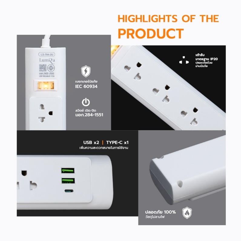 1) ปลั๊กไฟ LUMIRA รุ่น LS-704/2U