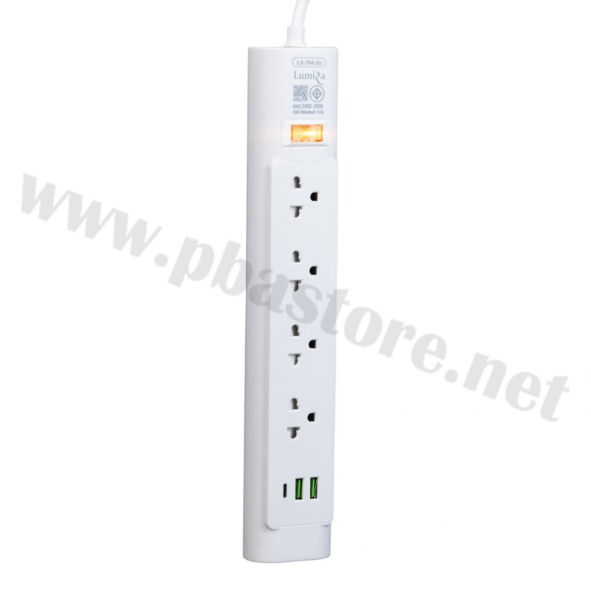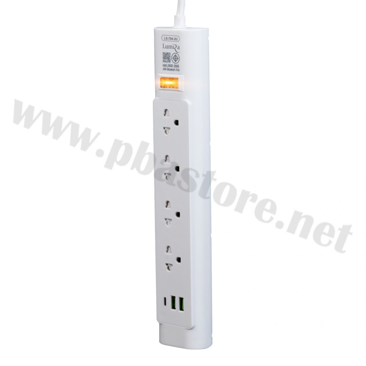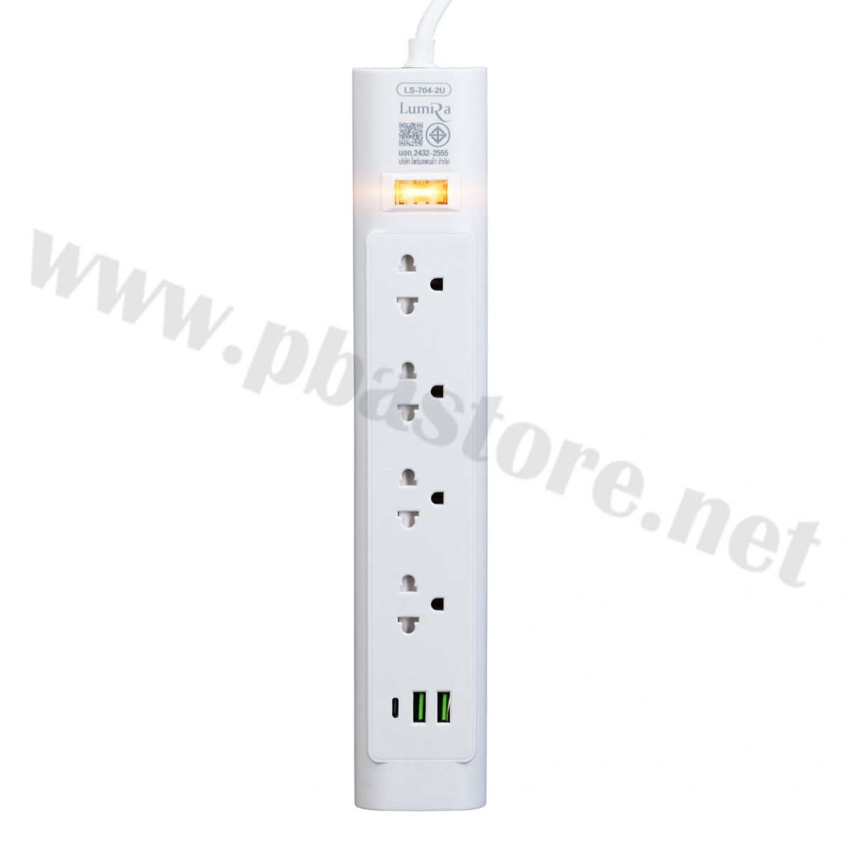 ปลั๊กไฟ 4 ช่อง + USB 2 ช่อง + Type-C 1 ช่อง สายยาว 3 เมตร สีขาว LUMIRA รุ่น LS-704/2U(3M) (มี มอก.) ปลั๊กไฟ 4 ช่องเสียบไฟมาตรฐาน มีช่อง USB 2 พอร์ต และ Type-C 1 พอร์ต