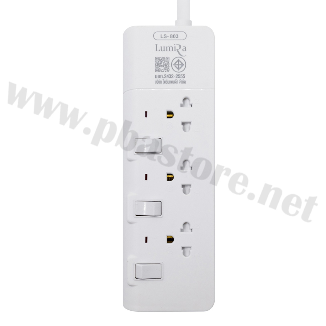 ปลั๊กไฟ 3 ช่อง มีสวิตช์เปิดปิดทุกช่อง สายยาว 5 เมตร สีขาว LUMIRA รุ่น LS-803(5M) (มี มอก.)ปลั๊กไฟคุณภาพสูง มาพร้อม 3 ช่องเสียบไฟฟ้า และ สวิตช์เปิด-ปิดแยกแต่ละช่อง เพื่อความปลอดภัยและประหยัดพลังงาน