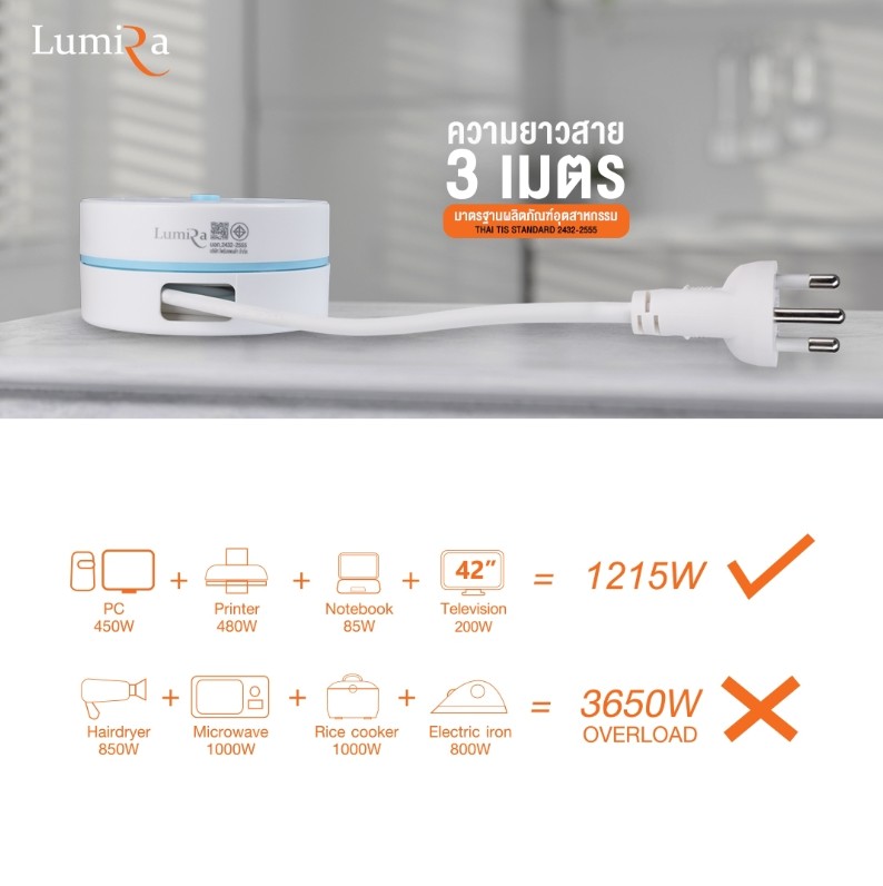1) ปลั๊กไฟแบบม้วน LUMIRA รุ่น LS-023 (3M) =1ชุด