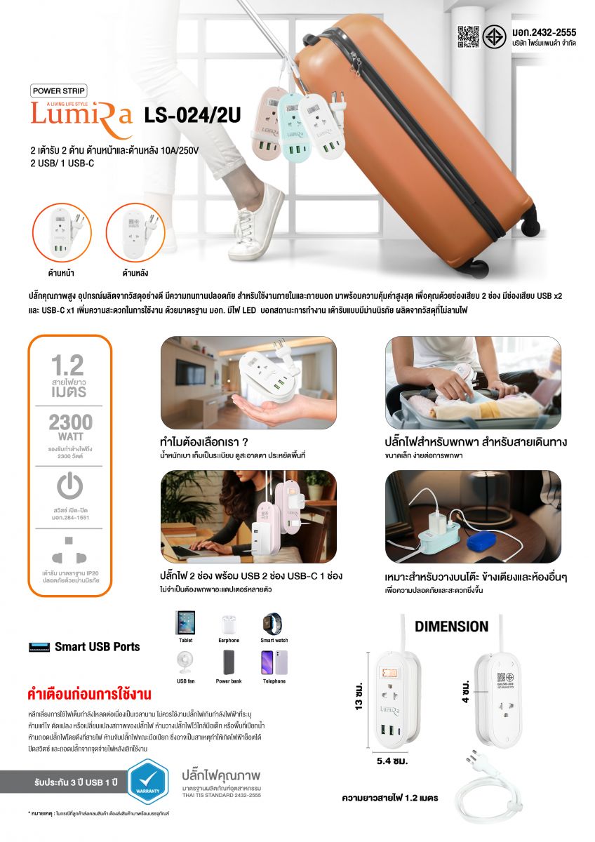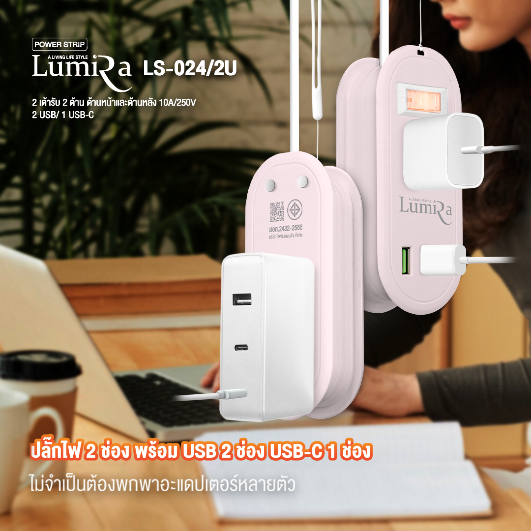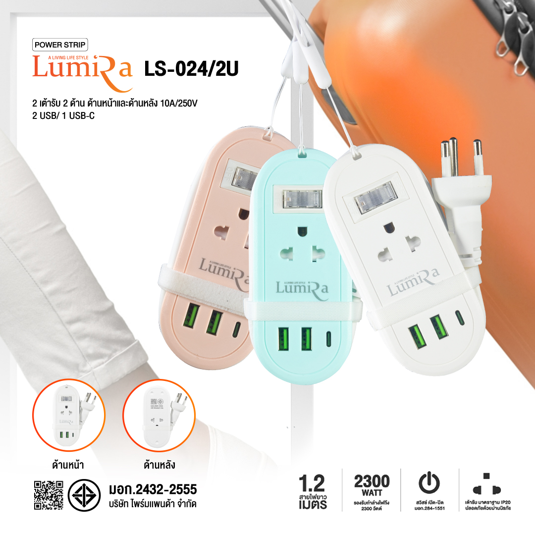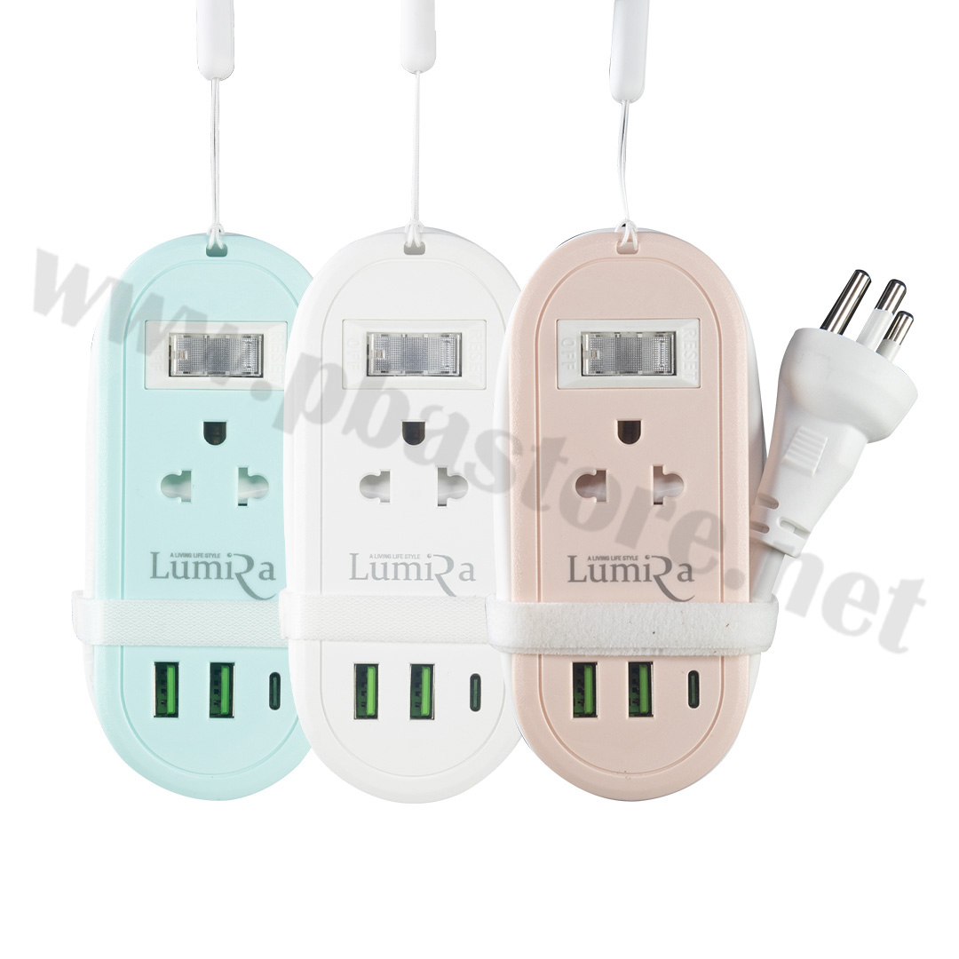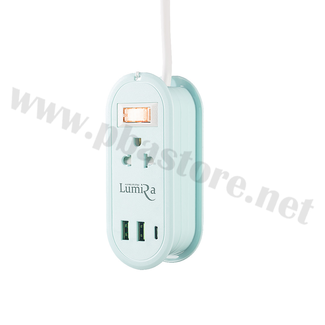 ปลั๊กไฟมินิ 1 ช่อง + USB 2 ช่อง + Type-C 1 ช่อง สวิตช์เปิดปิด สายยาว 1.2 เมตร สีเขียว LUMIRA รุ่น LS-024/2U GREEN (มี มอก.)ออกแบบมาเพื่อการใช้งานที่ทันสมัยในพื้นที่จำกัด ราคา 140.00 .-