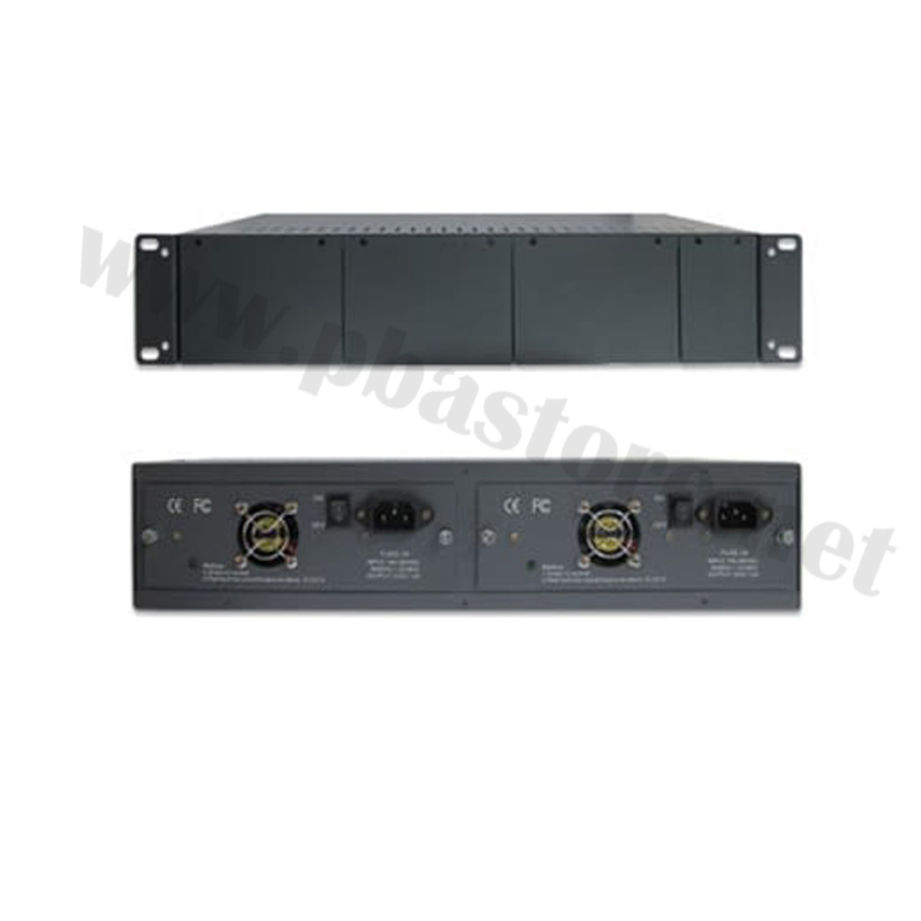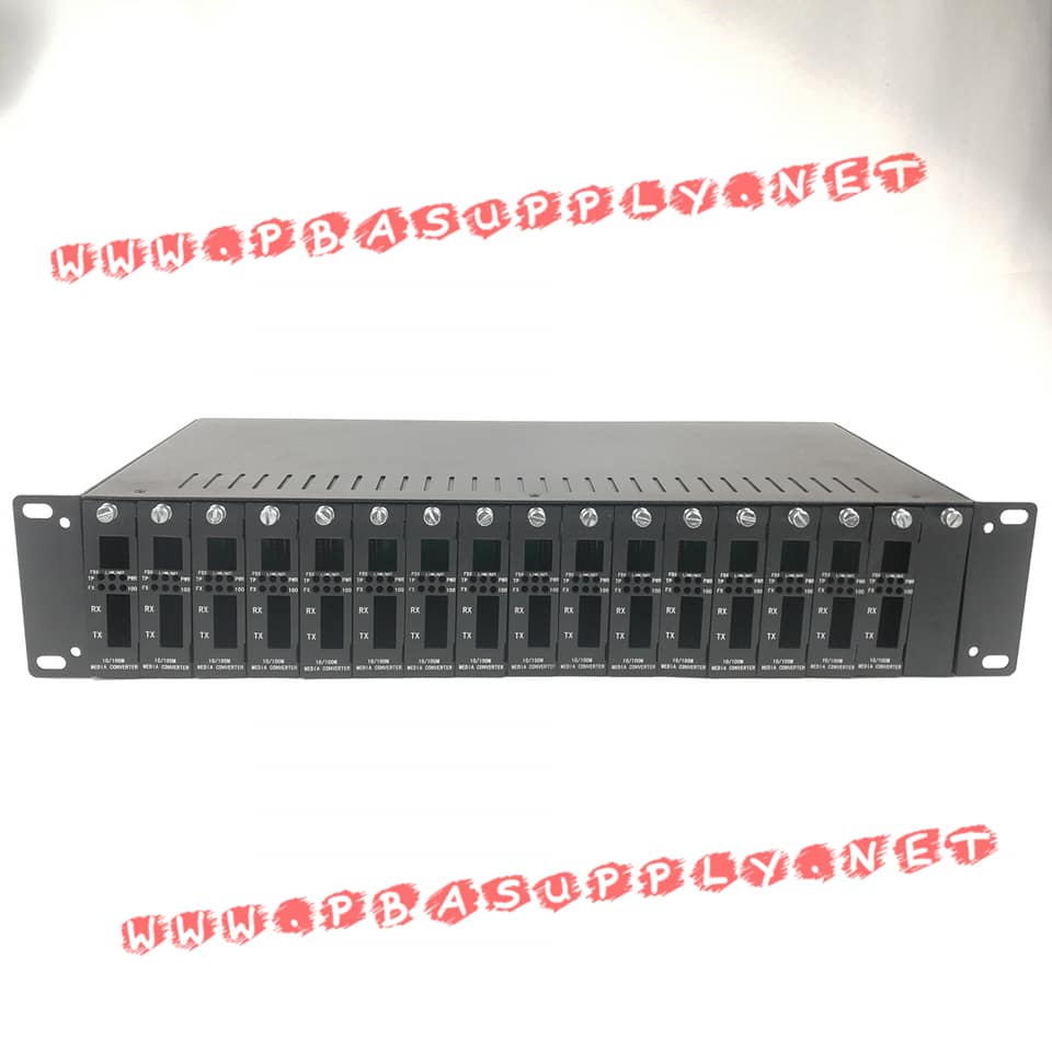 เหมาะสำหรับการรวมอุปกรณ์ Media Converter ให้เป็นระบบศูนย์กลาง มีระบบระบายความร้อน และจ่ายไฟรวมจาก Power Supply ที่ติดตั้งภายใน