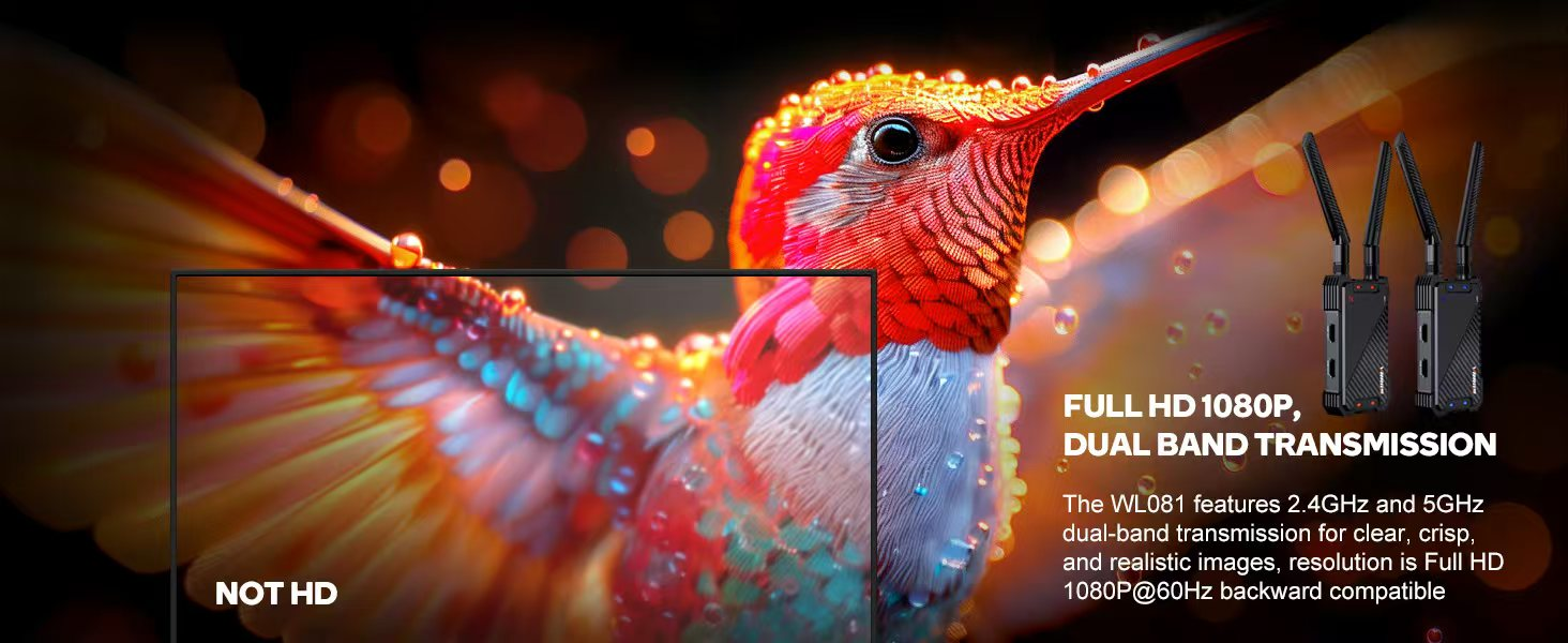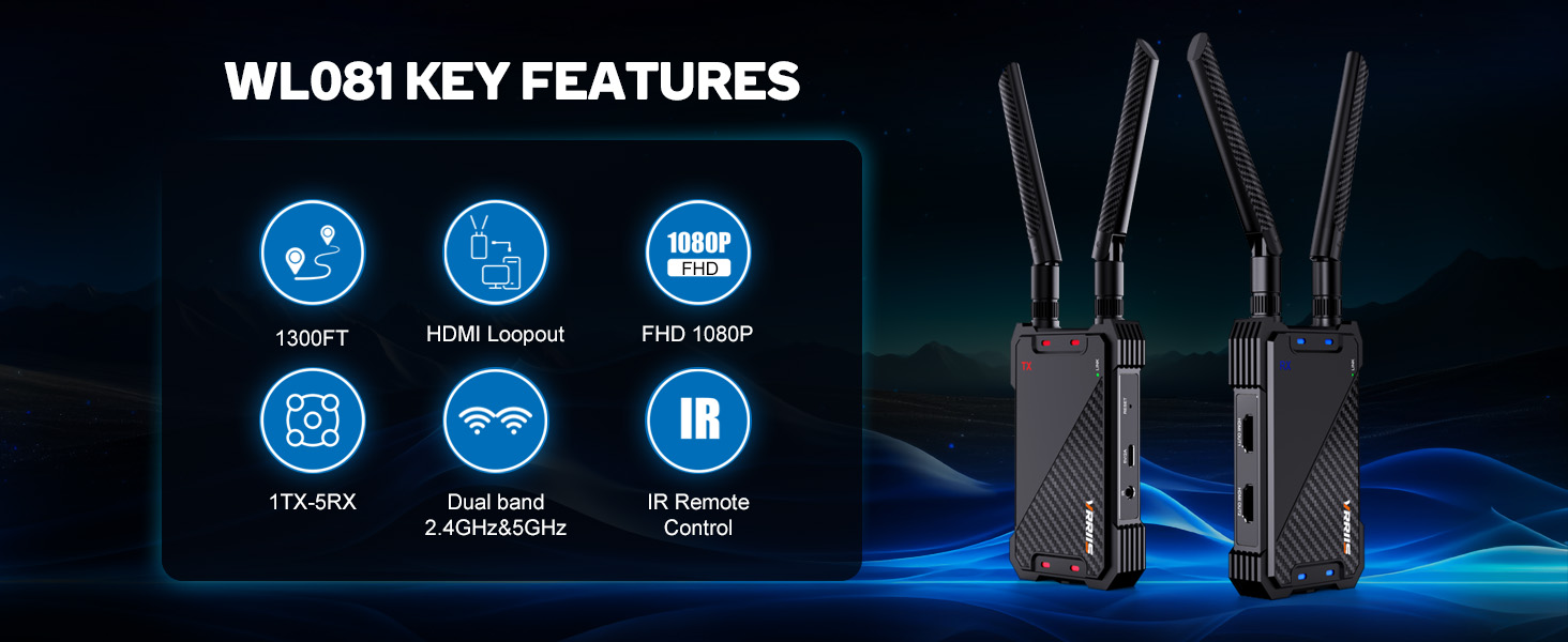 HDMI WIRELESS CONVERTER 1080P@60Hz (รับส่งสัญญาณภาพไร้สาย) 400M (TX/RX) VRRiiS รุ่น WL081 มาพร้อมเทคโนโลยีการส่งข้อมูลความเร็วสูง รองรับระยะทางไกลถึง 400 เมตร ในพื้นที่โล่ง